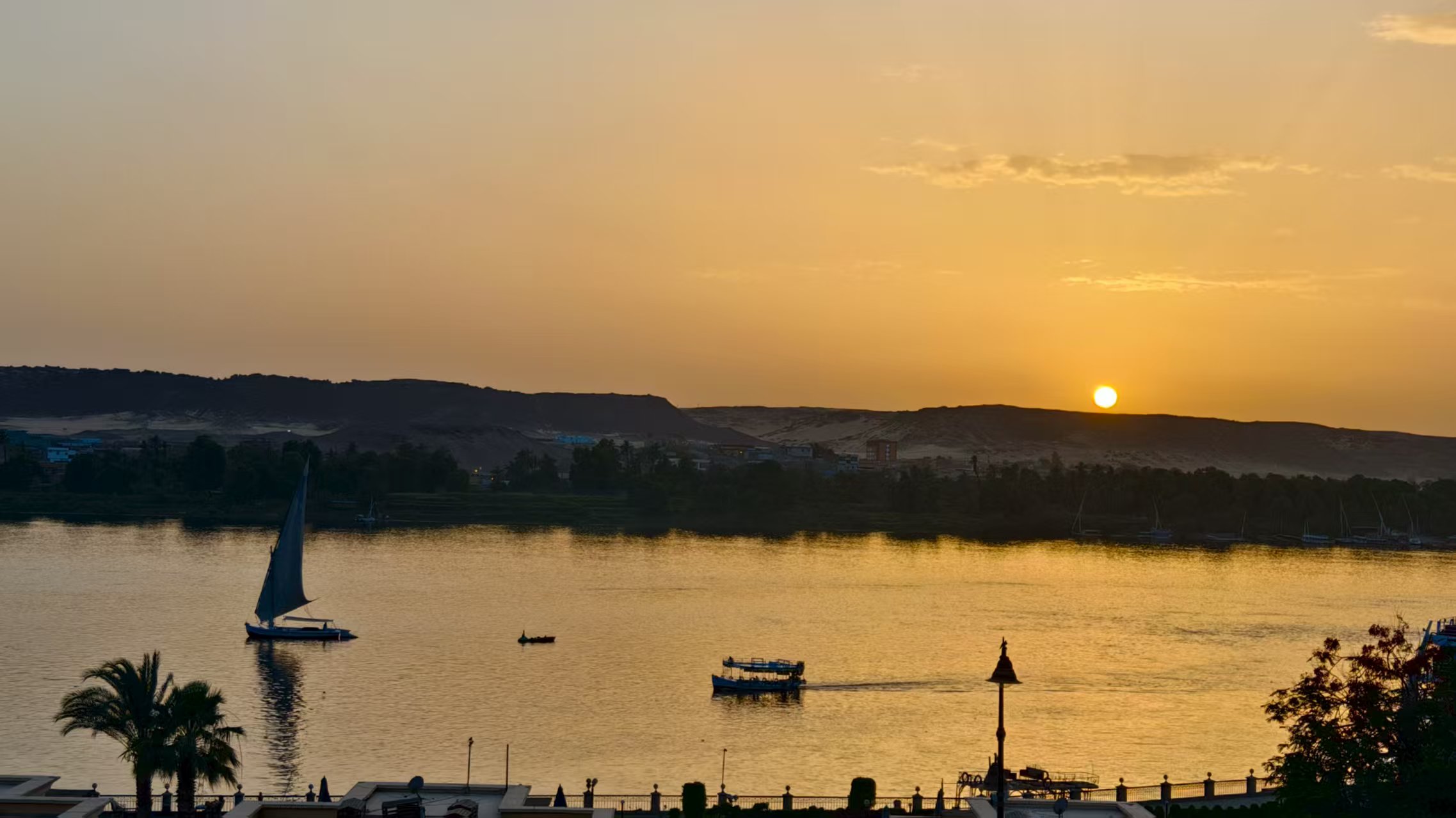 傍晚,我们坐了一艘 “felucca”(风帆船),在尼罗河上漂流。船夫是个年轻人,他唱起了当地的歌谣,声音洪亮,和着风声、水声,格外动听。尼罗河的水很平静,两岸的芦苇随风摇摆,远处的卢克索神庙渐渐亮起灯光,金色的灯光照在神庙的尖顶上,像一座空中宫殿。船夫说:“尼罗河是埃及的母亲河,没有它,就没有古埃及的文明。你看,两岸的农田都是靠尼罗河的水灌溉的,我们喝的水、用的水,也都来自尼罗河。