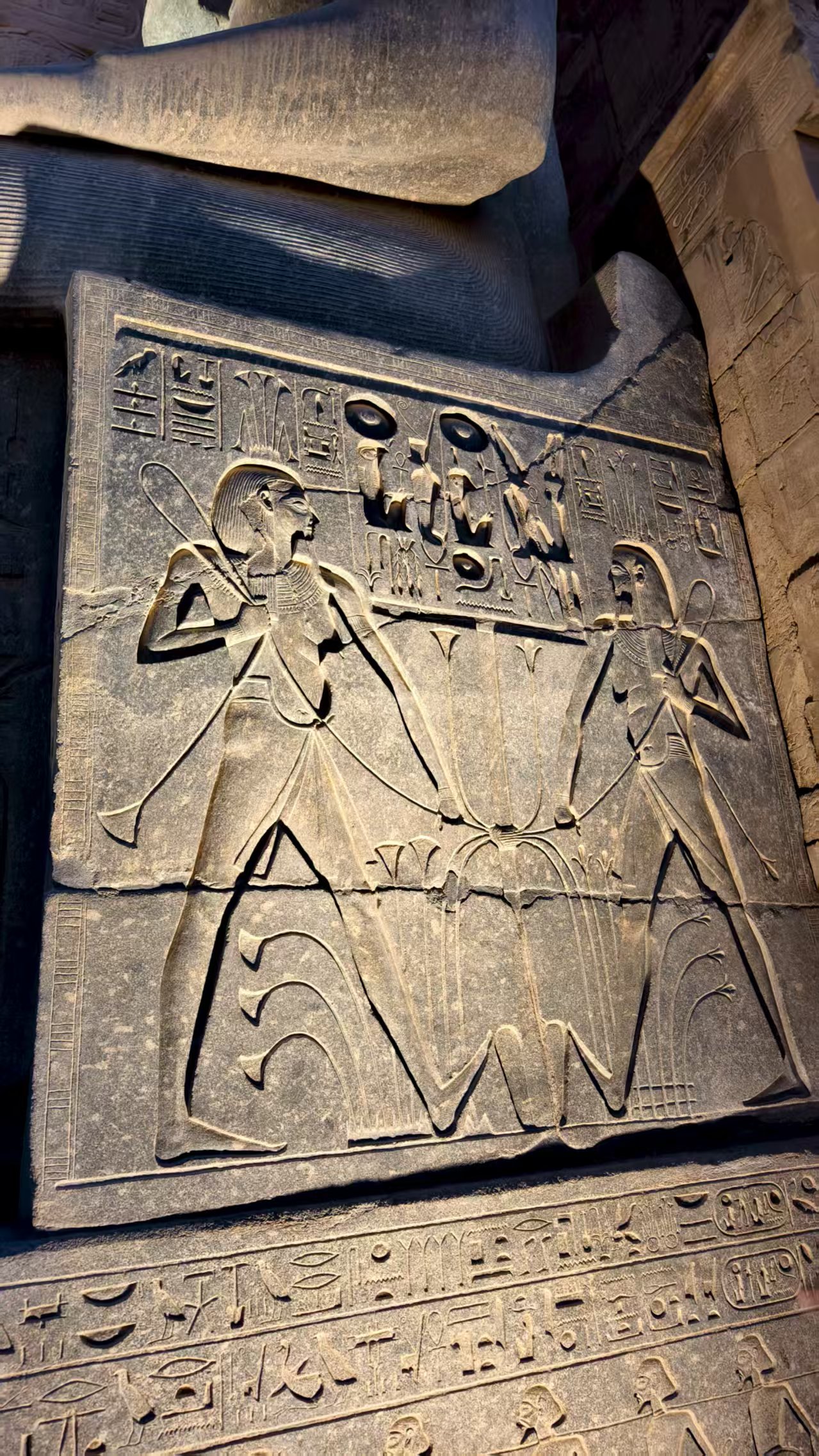 走进神庙,里面的通道很窄,墙壁上刻满了浮雕,大多是拉美西斯二世打仗的场景:他骑着马,拿着剑,身边的士兵跟着他冲锋,敌人则倒在地上。最里面的圣殿里,立着四尊雕像,分别是拉美西斯二世、太阳神阿蒙、神化的拉美西斯和月亮神。向导说:“这座神庙最神奇的地方是太阳节 —— 每年 2 月 21 日和 10 月 21 日,太阳会穿过通道,照在圣殿里的三尊雕像上,只有月亮神不会被照亮。2 月 21 日是拉美西斯二世的生日,10 月 21 日是他的加冕日,古埃及人通过天文计算,把太阳节和这两个日子结合起来,太厉害了!”