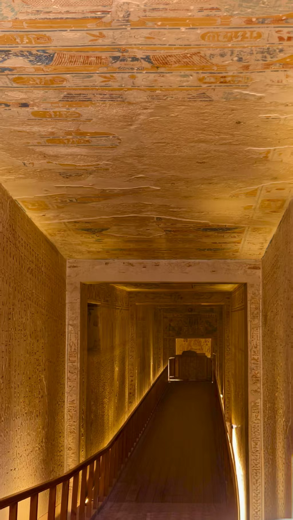 帝王谷。这里是法老的陵墓所在地,山谷里布满了大大小小的墓穴,最有名的是图坦卡蒙的陵墓。虽然图坦卡蒙是个年轻的法老,陵墓也不大,但里面的文物却保存得异常完好 —— 黄金面具、黄金棺材、珠宝首饰,每一件都精美得让人窒息。走进墓穴时,通道很窄,墙壁上的壁画色彩依旧鲜艳:蓝色的天空、绿色的植物、红色的太阳,还有图坦卡蒙和神对话的场景。向导说:“古埃及人相信,人死后会进入另一个世界,所以他们会在陵墓里画满生活场景,还会放很多食物和用品,让法老在另一个世界也能过得好。”