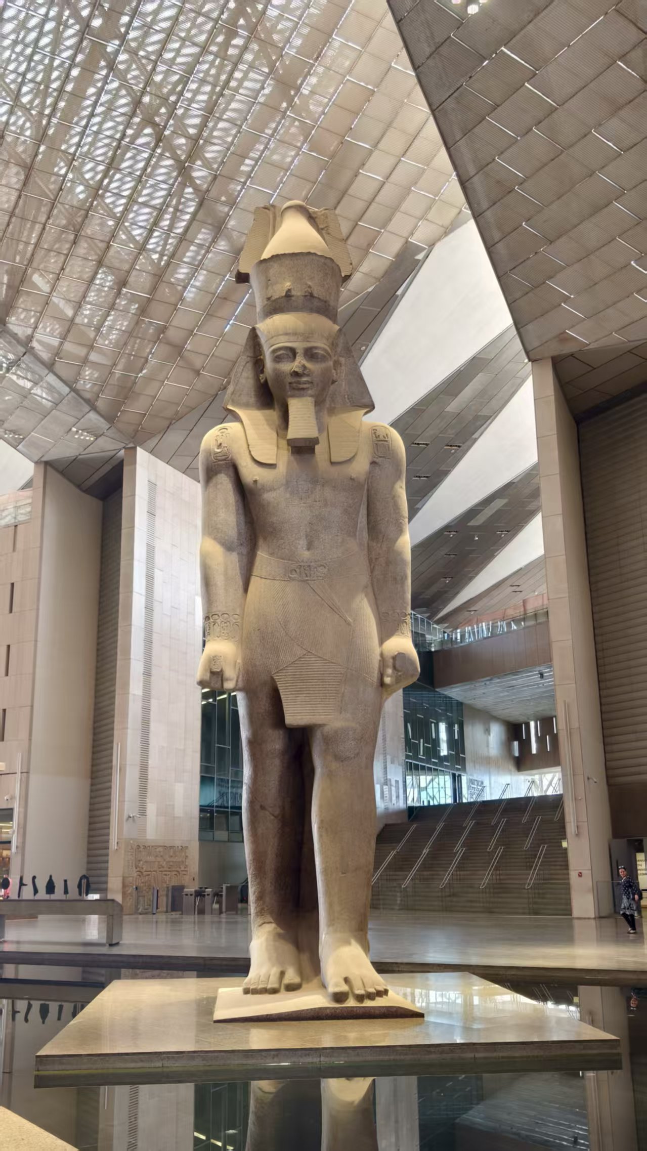 埃及国家博物馆。这座红白色的新古典主义建筑里,藏着古埃及的 “时光胶囊”:图坦卡蒙的黄金面具静静躺在玻璃柜里,面具上的蓝宝石眼睛闪着幽光,额头的秃鹫和眼镜蛇浮雕精致得仿佛昨天才完成;展厅角落的 “木乃伊室” 里,拉美西斯二世的遗体蜷缩在棺木中,皮肤早已干枯呈褐色,但头发和指甲仍清晰可见,隔着玻璃,仿佛能听见这位法老沉睡千年的呼吸。