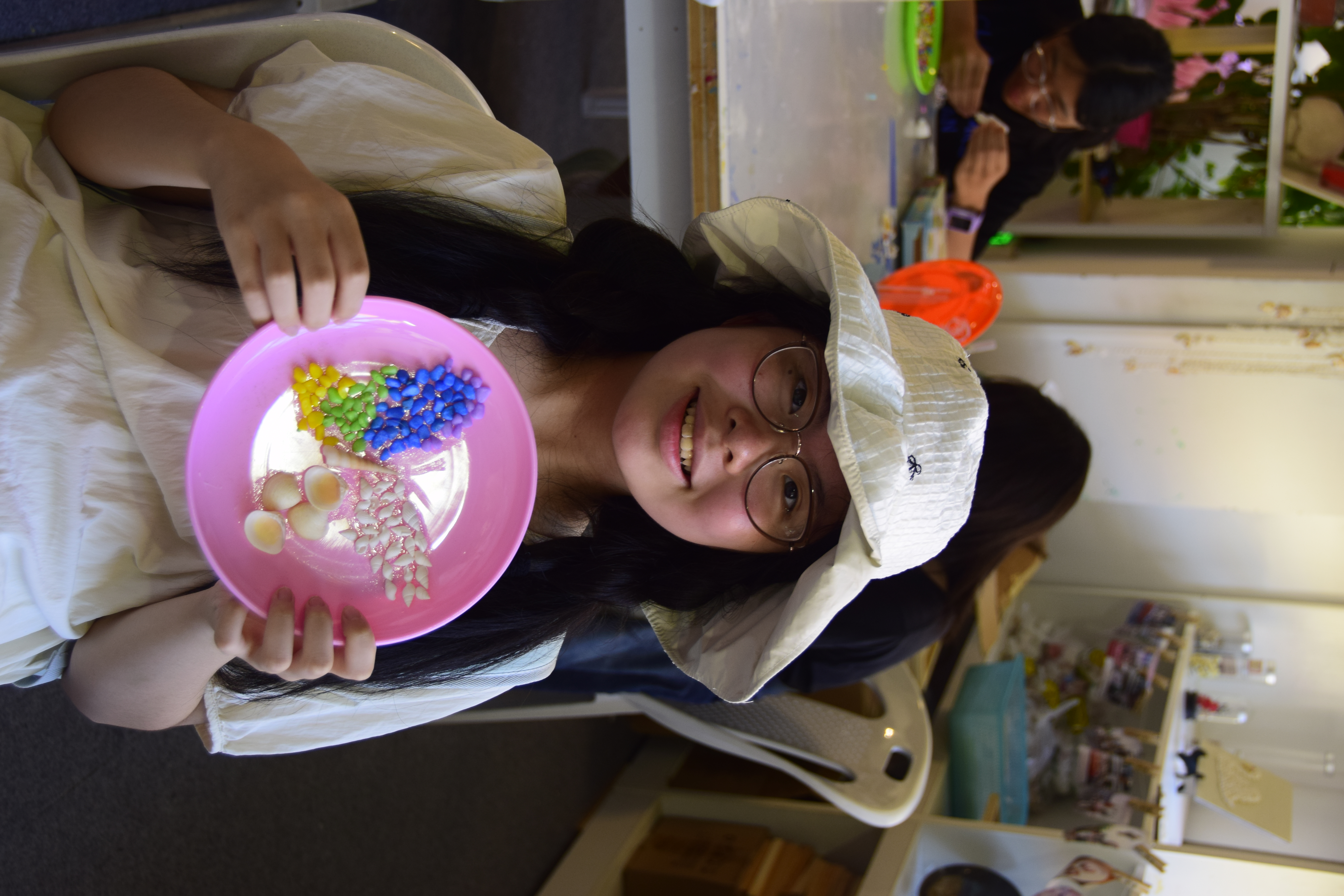 D2第二天在山海恒达,时间仿佛静止了。蝴蝶定格在最美的姿态,小鹿的眼睛还闪着光。直到亲手制作“蓝眼泪”时——蓝色的荧光在玻璃瓶中流动,孩子们轻轻摇晃,整个大海的夜晚仿佛都被装进了掌心。下午的北部湾,风车在山巅缓缓旋转,站在玻璃栈道上,咸腥的海风把每个人的头发都吹成了迎风的旗。