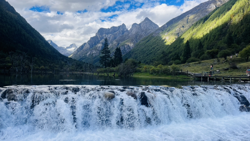 脚步轻踩木栈道,先遇隆珠措的枯树立水,钙华包裹的根系死而不倒,成了时光的标本;再入人参果坪,春夏的野花铺成彩色花篮,溪水漫过草甸时,连牦牛的倒影都变得温柔。若想动起来,3500米海拔的漂流最是惬意,船在水上漂,人在画中行,看沙棘林从两岸缓缓退开。