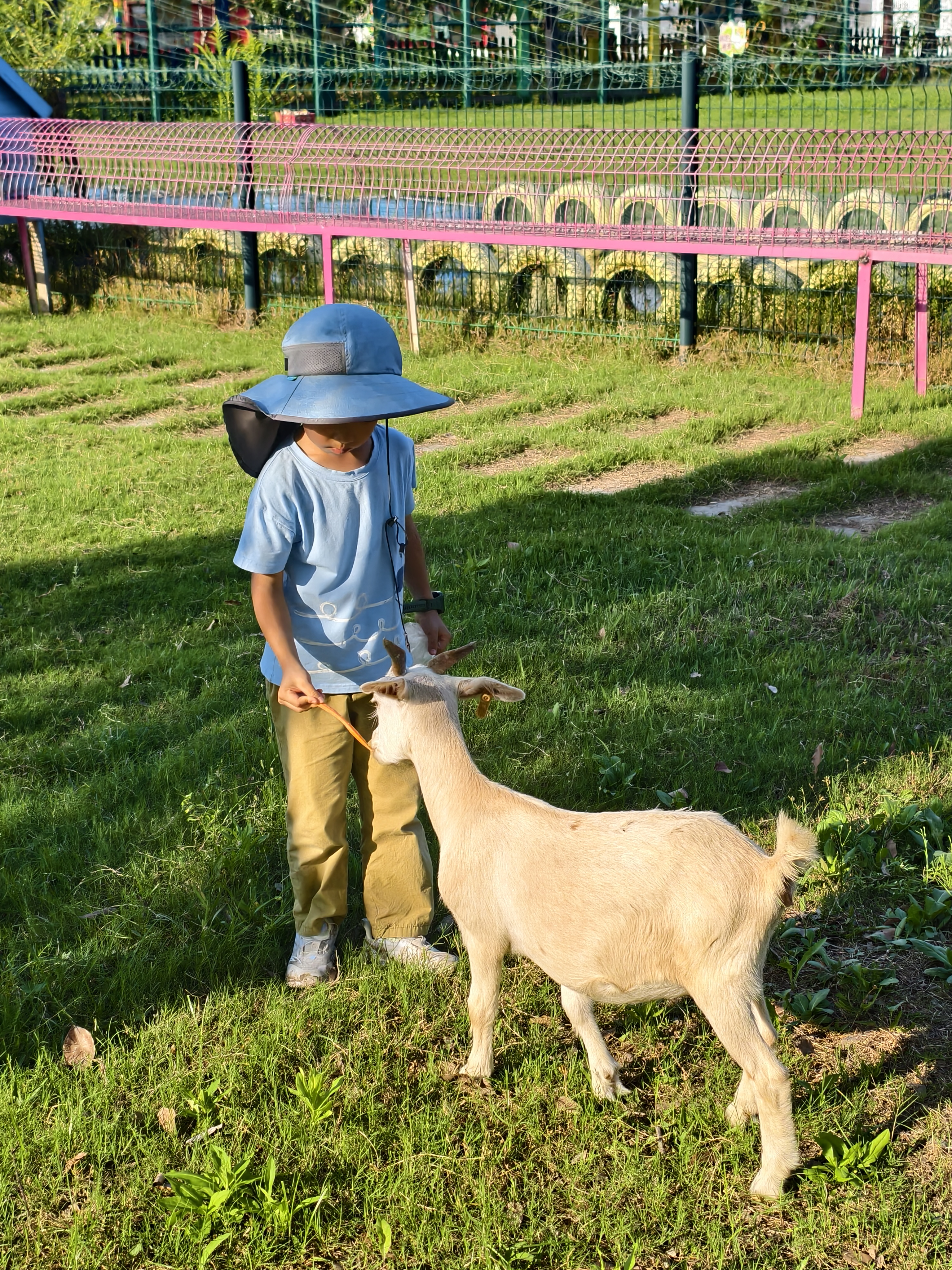 活动的尾声,是与萌宠们的温情互动。孩子们用新鲜的胡萝卜,喂食了温顺亲人的小羊和步伐滑稽的鸵鸟,在爱与欢笑中,为这充实而完美的一天画上了温暖的句号。