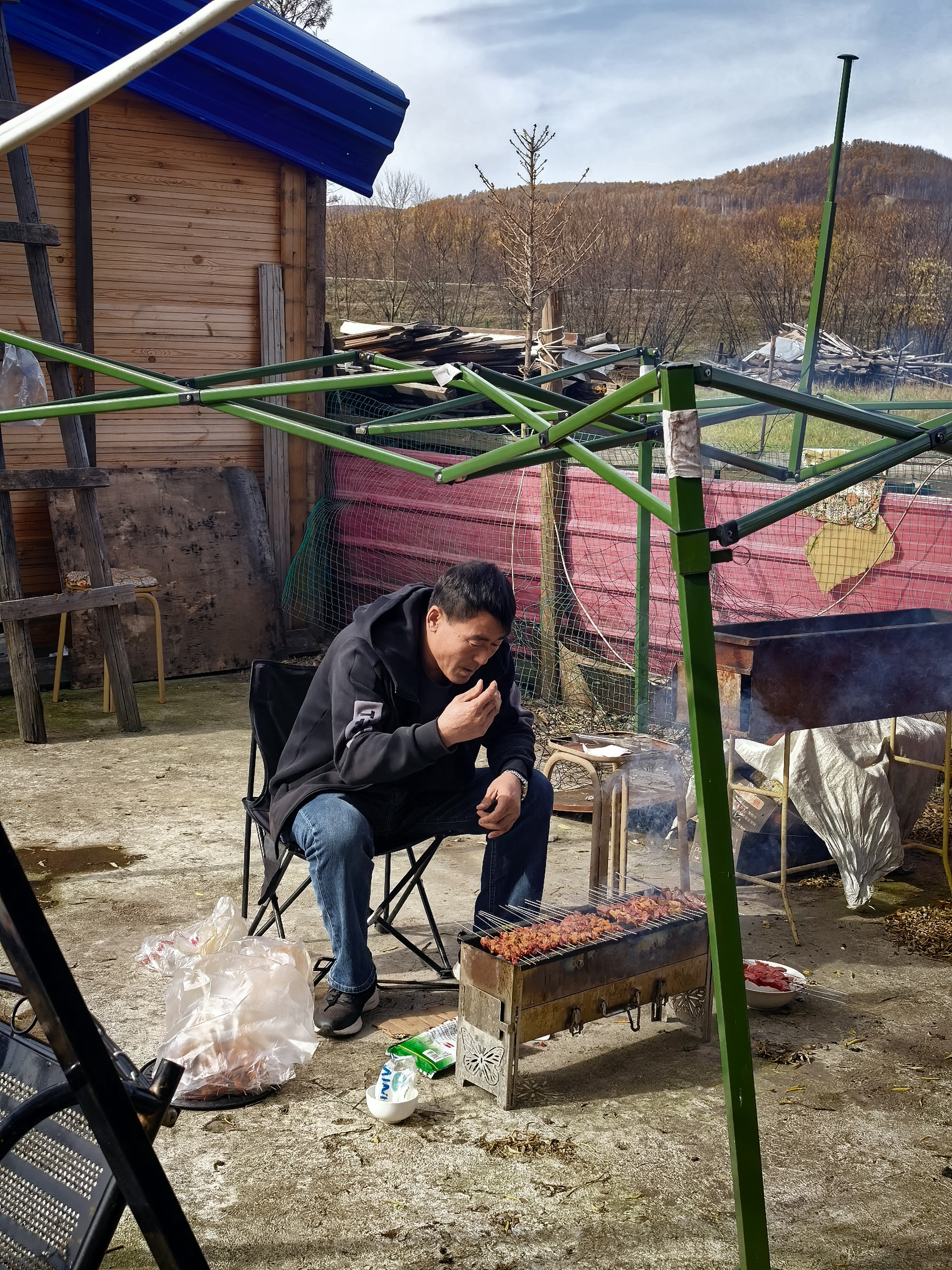 坐在天地之间,享受这一刻的自由与宁静。到达制高点,背靠白桦林,面朝中俄边境一望无际起伏的草原。