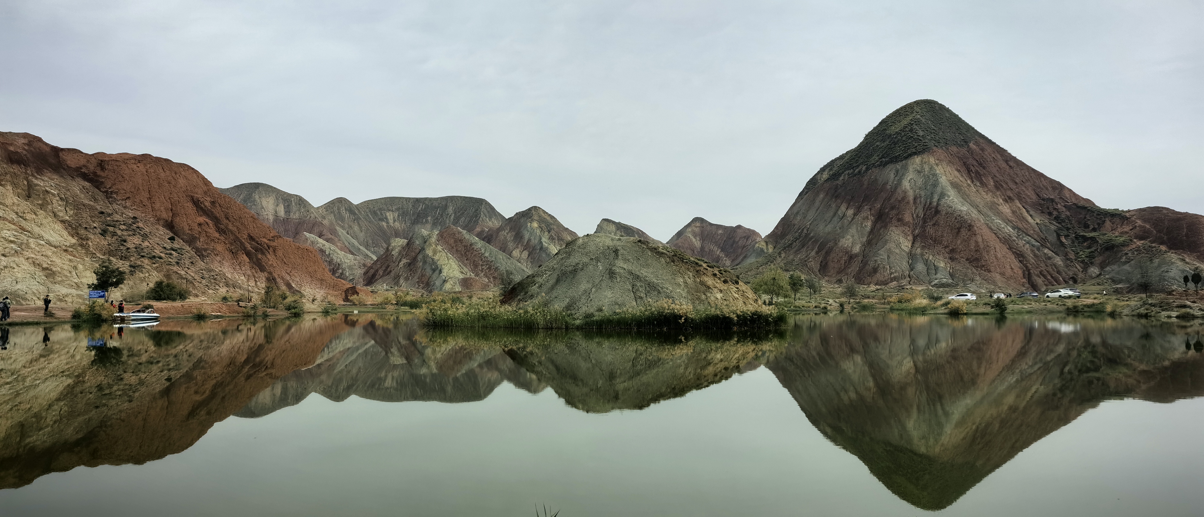 第二天,我们便出发在水映丹霞的晨光里徒步,赭红的山体在水中倒映出斑斓的世界。
