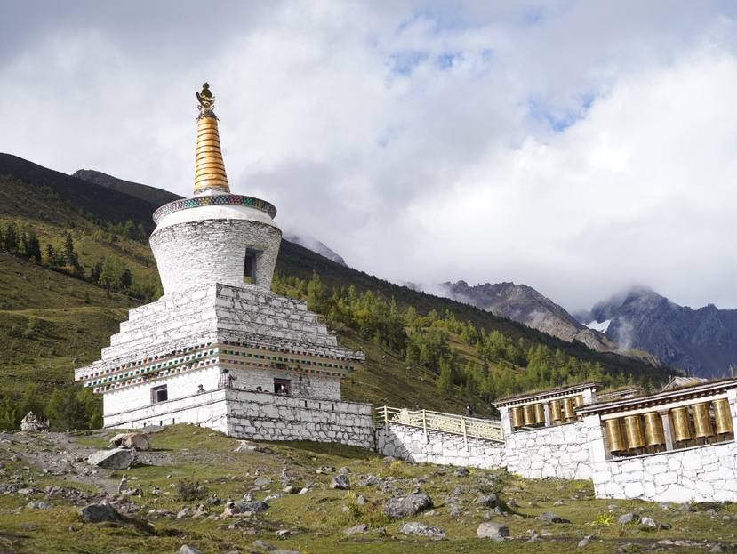 我们一路看雪山,看松鼠,,白塔,经幡,感受川西十里不同天的变化,上一秒艳阳高照,下一秒倾盆大雨,过了一会儿又晴空万里,这就是川西的魅力之处吧。