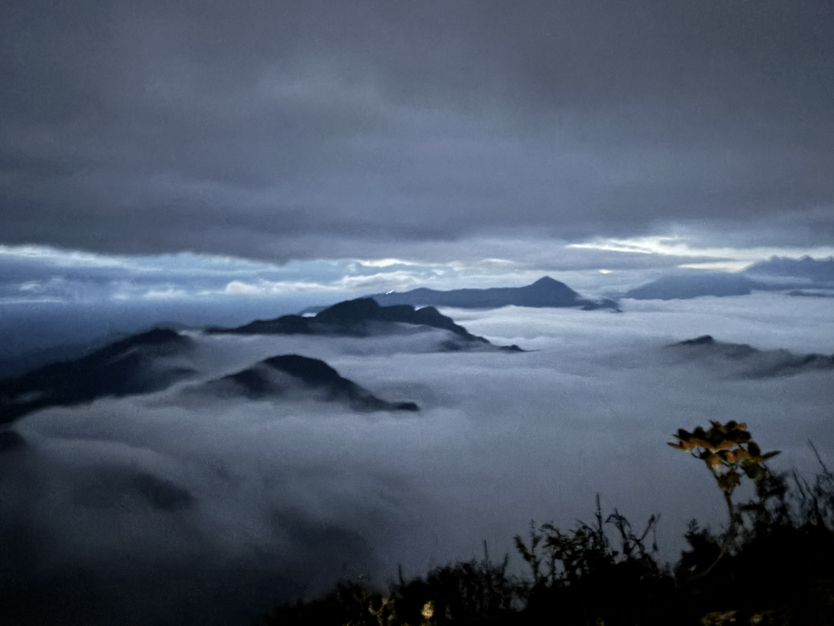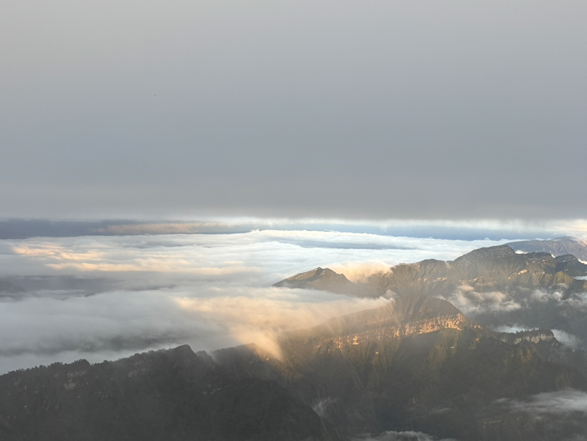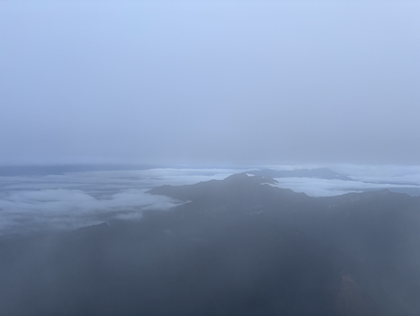 等了一个小时,雾气开始消散,露出了一点大山的表面和薄薄的云海