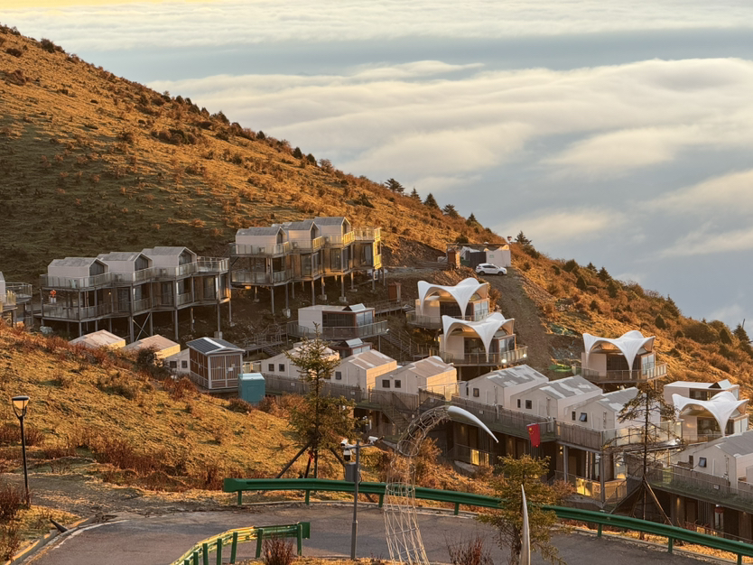 从山下仰视星辰营地,云雾缭绕,特别漂亮