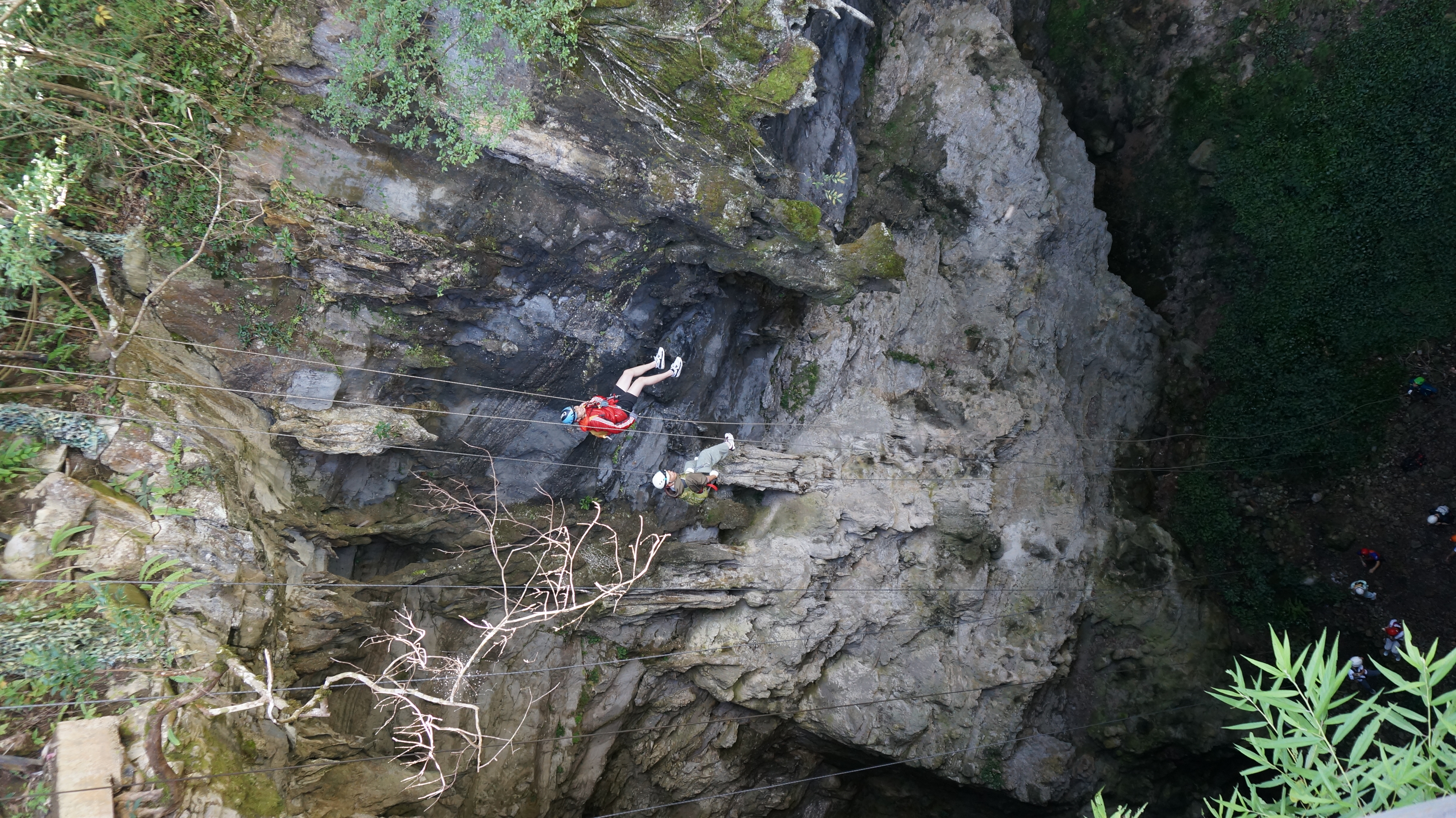 清晨的阳光刚越过车顶,我们便驱车向乐业出发。四个小时的车程里,风景从城市渐变为层叠峰丛,终于抵达“风子荡探险服务驿站”。穿戴好头盔与安全带,在教练的指导下练习动作时,掌心虽有些出汗,但更多的是期待。