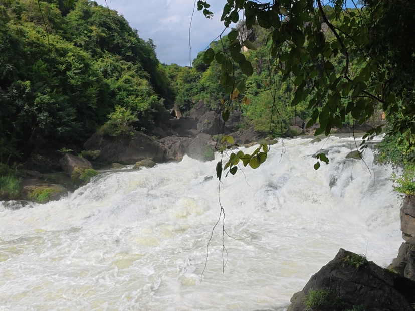 次日,我们去到了位于塘边镇的天然溶洞开始了长达几小时的“地心探险之旅”。屏息踏入黑暗,仿佛跌进地球的脉管。头灯光柱刺破亿万年沉寂,钟乳石如凝固的瀑布悬于头顶,石笋在脚下悄然生长。水滴从穹顶坠落,在深潭击出空灵回响,那是地质时钟的滴答。穿行于巨兽肋骨般的石幔间,我们像个误入远古宫殿的渺小访客,每一步都踩在时间的褶皱里。