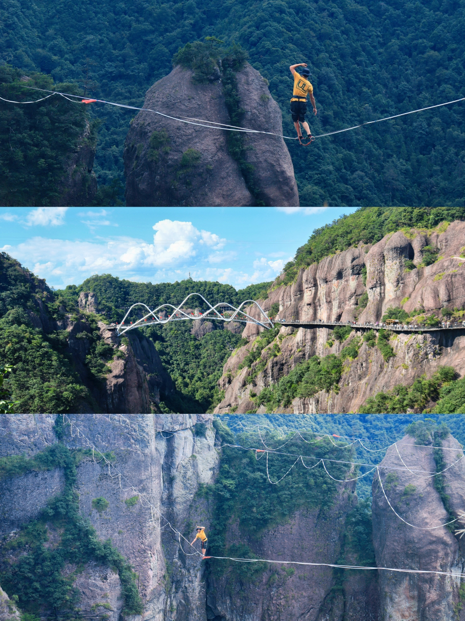 乘坐索道上山时,视角渐渐升高,脚下的树木变成了绿色的海浪,云雾在身边游走,伸手仿佛能摸到云的柔软。下了索道,沿着悬空的栈道往前走,栈道建在悬崖边,往下看是深不见底的山谷,往上看是挺拔的山峰,偶尔有山风吹过,带着山间的清凉,让人忍不住停下脚步,贪婪地呼吸着新鲜空气。