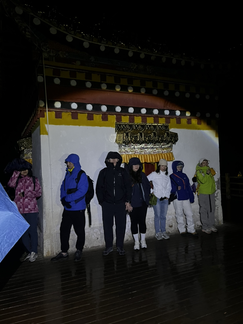 清晨5:50,我们集合前往郎木寺(四川寺) 期待拍摄晨曦,奈何天公不作美,下起雨来。一行人便在亭子内避雨、交流摄影心得,倒也别有一番趣味。虽然部分团友选择撤回酒店休息,但仍有几位执着的老哥坚守阵地。果然,到了9点多,云开雾散,蓝天白云下的寺庙格外清新壮丽,坚持迎来了回报,大家尽情拍摄直至中午。