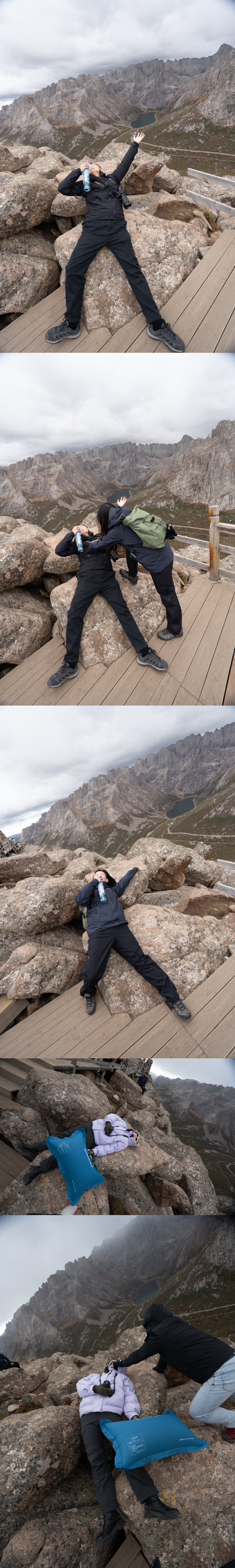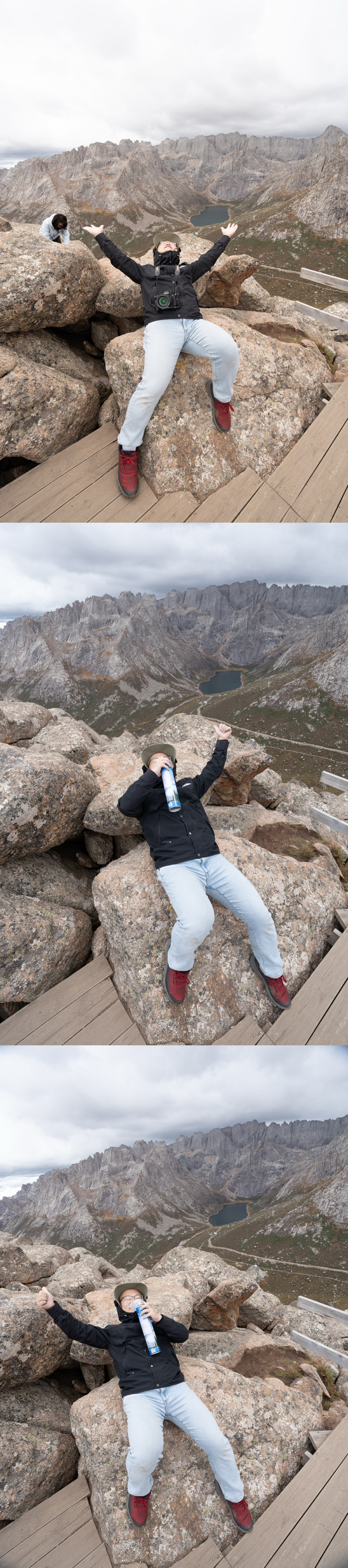今天,我们全天沉浸于“魔界”莲宝叶则 的奇崛风光之中。我们在扎尕尔措湖边拍摄如丝绸般的流水慢门,放飞无人机俯瞰圣湖的全景,更挑战了海拔4520米的观景台。尽管步履沉重,但大家互相鼓励,登顶那一刻的壮阔山景让所有疲惫烟消云散,我们甚至在山顶放声高歌,尽情释放着内心的激动。天气瞬息万变,一场雨后,天边惊现完整的彩虹,而在前往秘境湖泊的途中,我们甚至幸运地邂逅了成群的野生盘羊。