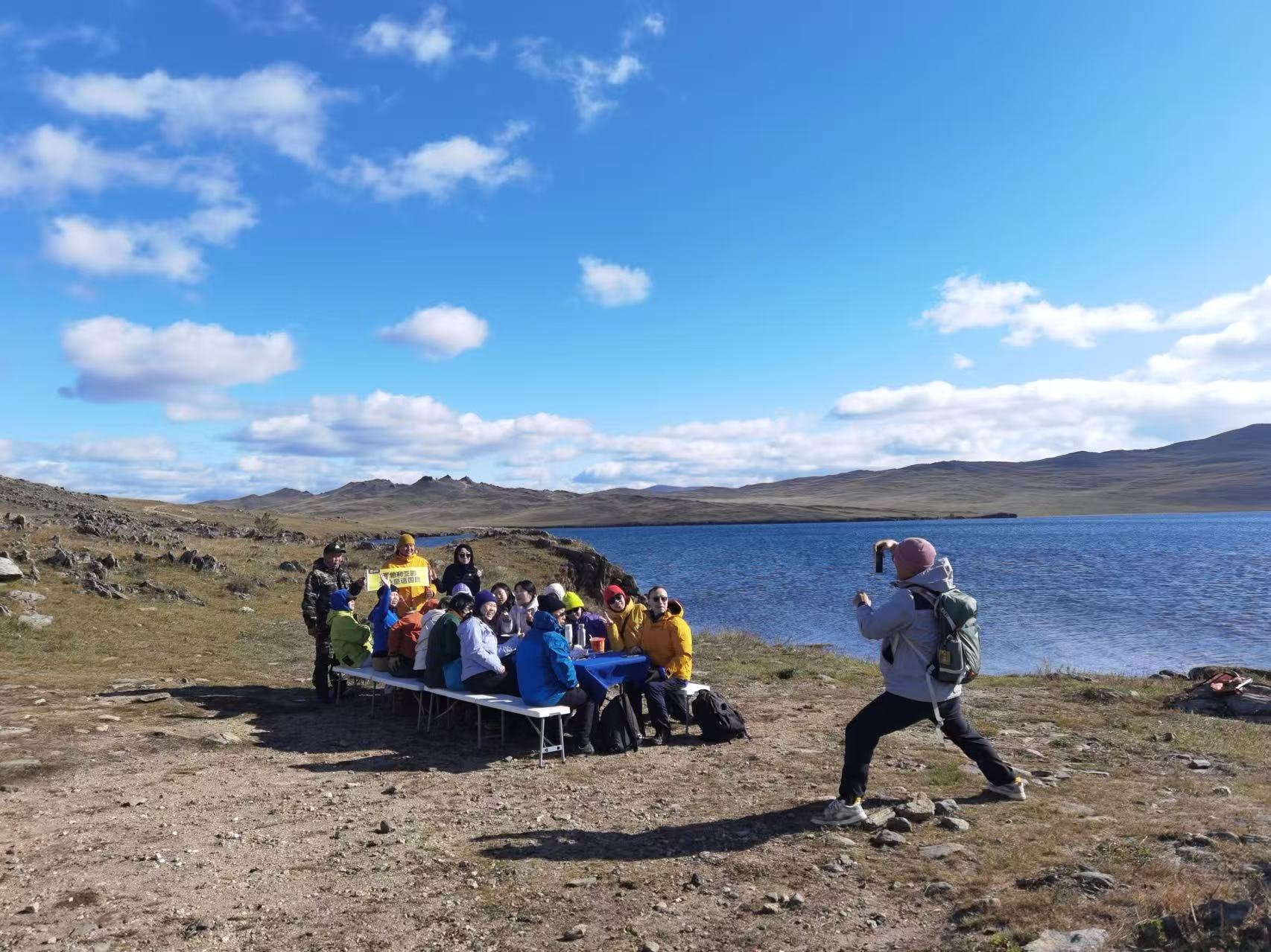 奥利洪岛南线的午餐会,拍照的是领队。