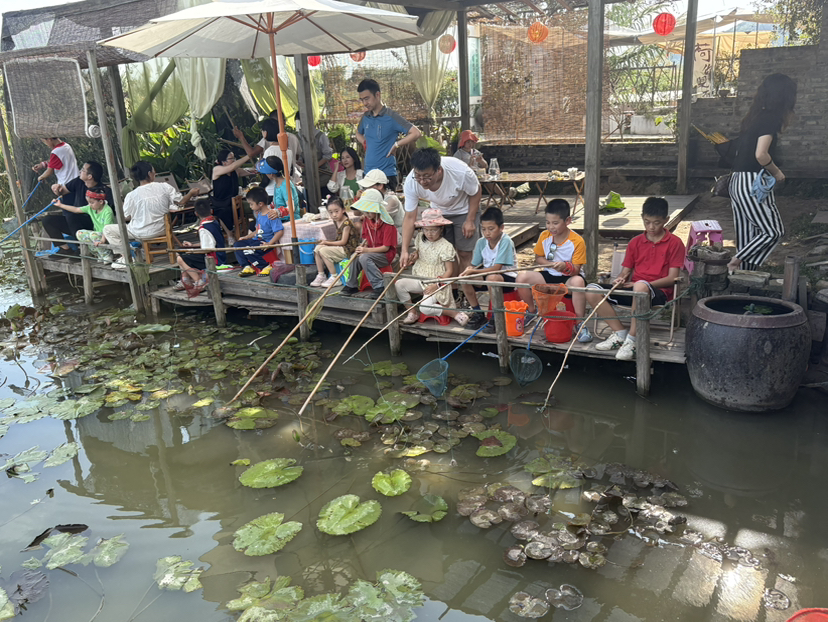 小龙虾垂钓大赛开启,个个都聚精会神,毕竟晚餐的硬菜在这里呢,哈哈哈哈😄