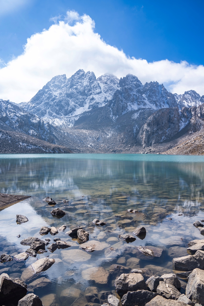 走到半山腰,我们发现了一个被雨水浇灌出的池塘。大家纷纷驻足拍照,池塘倒映出雪山的倩影,我开玩笑说是祁连山的勃朗湖!