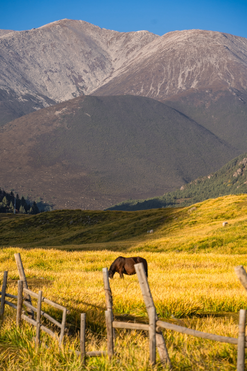 褪去了夏日的绿意,金色的草原更表现出西北地域的苍茫之感,拍出来的照片也多了几分Nordic的北欧画风。