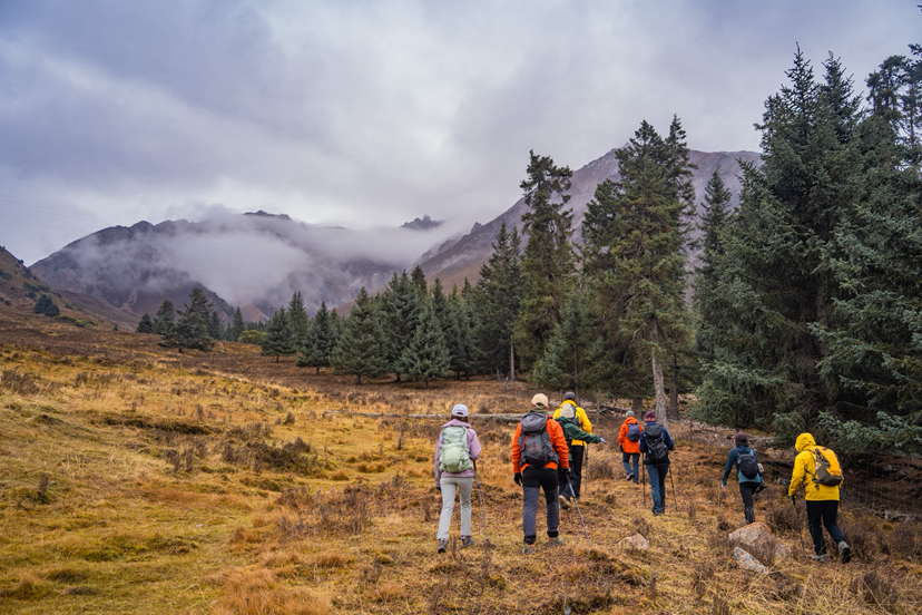 第二天的行程,眼前的色彩继续是一片金黄:冰沟林场到牛心山的草原徒步。