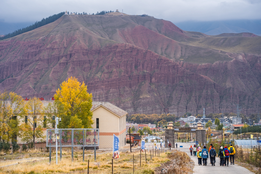 眼前的红山就是卓尔山的丹霞风光。卓尔山也是祁连县非常著名的景点,不过大部分的形象都是连绵的绿色山峦,秋季的风景比较少见。