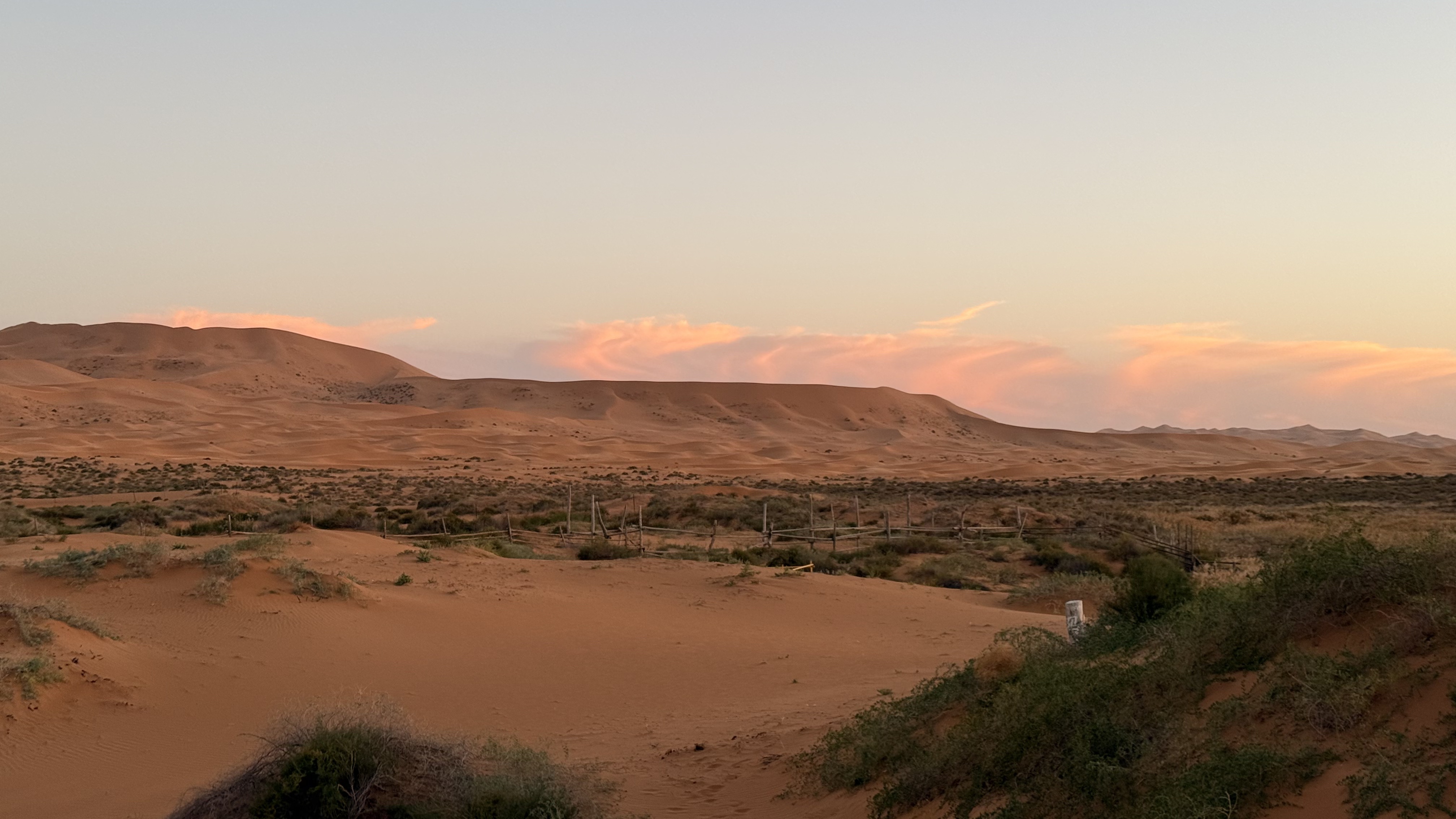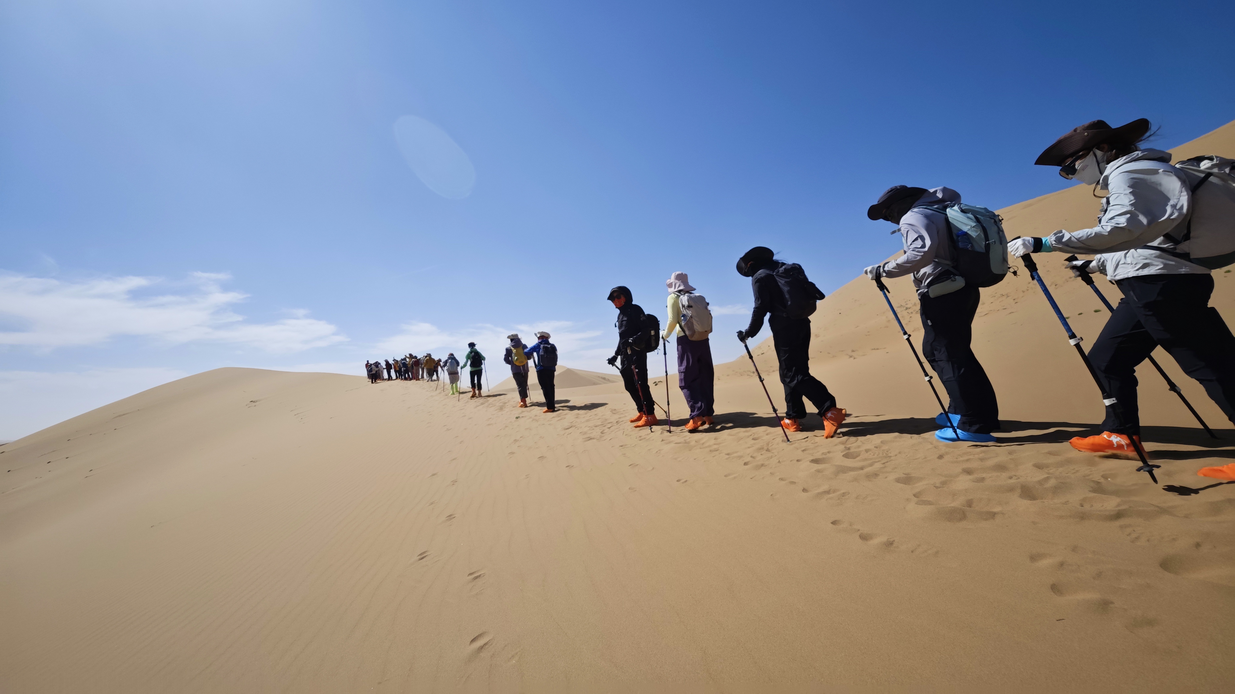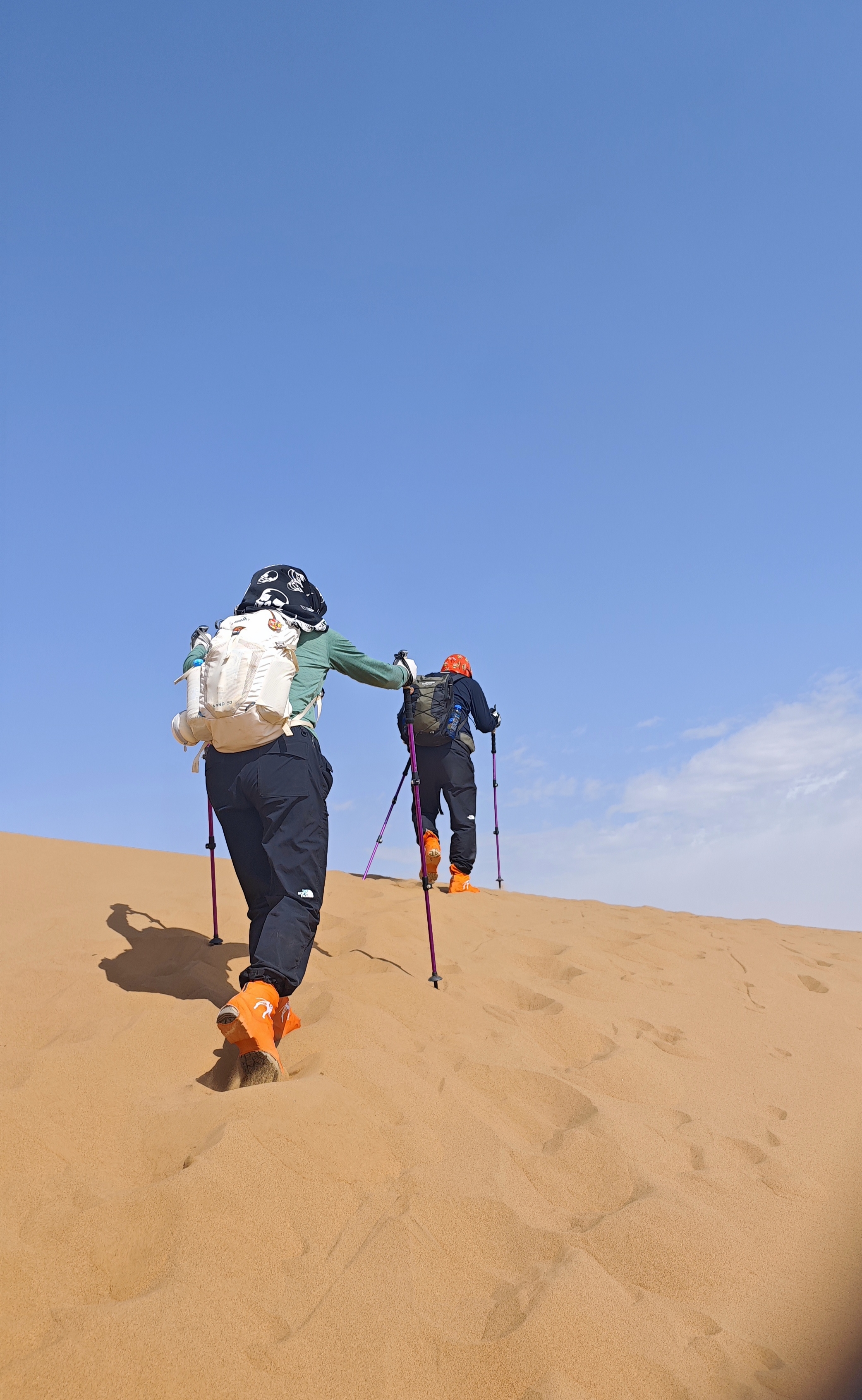 D3 今天的天气超级好,阳光热烈,风沙小,看到了日出🌅,也见识到了沙丘起伏连绵的壮美。行程20公里左右,走的最长。天很蓝,很容易出片。
