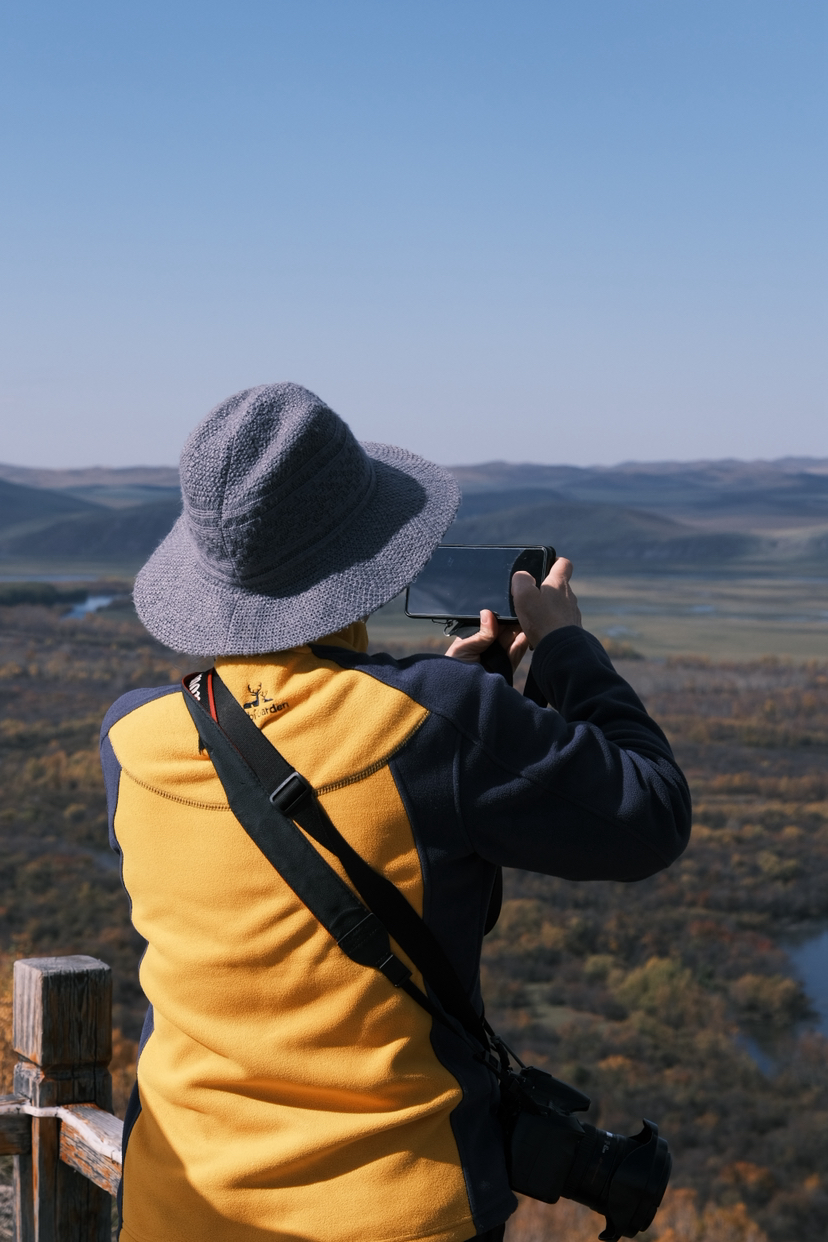 午后坐在天池边的木椅上,晒着温暖的秋阳,看落叶在湖面轻轻打转,思绪也跟着慢下来。累了就走进林间,踩过松软的落叶,闻着松脂的清香,偶尔捡起一片完整的枫叶,夹进书页里,便把阿尔山的秋藏了起来。