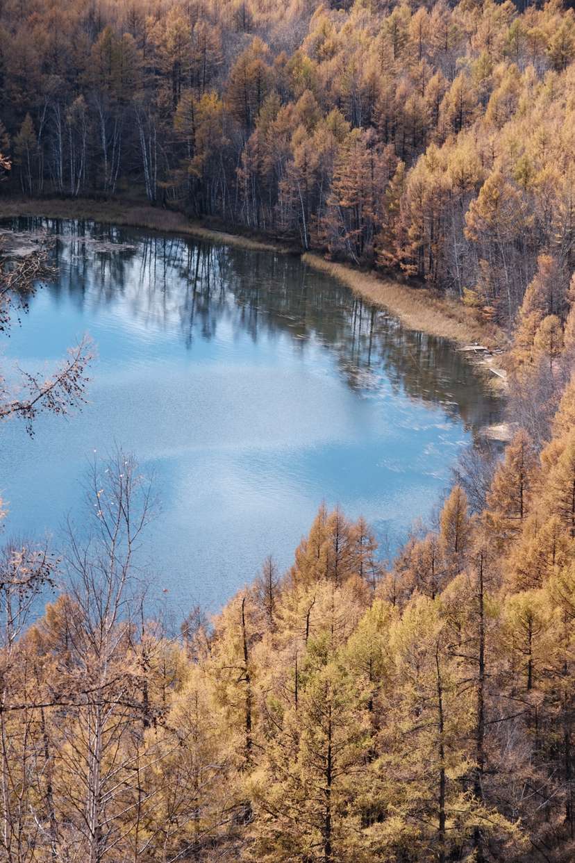 当秋风吹过阿尔山,整座小城便坠入斑斓梦境。这里的秋从不是单一的黄,而是火山地貌与林海碰撞出的多彩画卷——驼峰岭天池像块蓝宝石,嵌在金黄的落叶松与火红的五角枫之间,晨雾漫过池边时,仿佛仙境落了凡间。