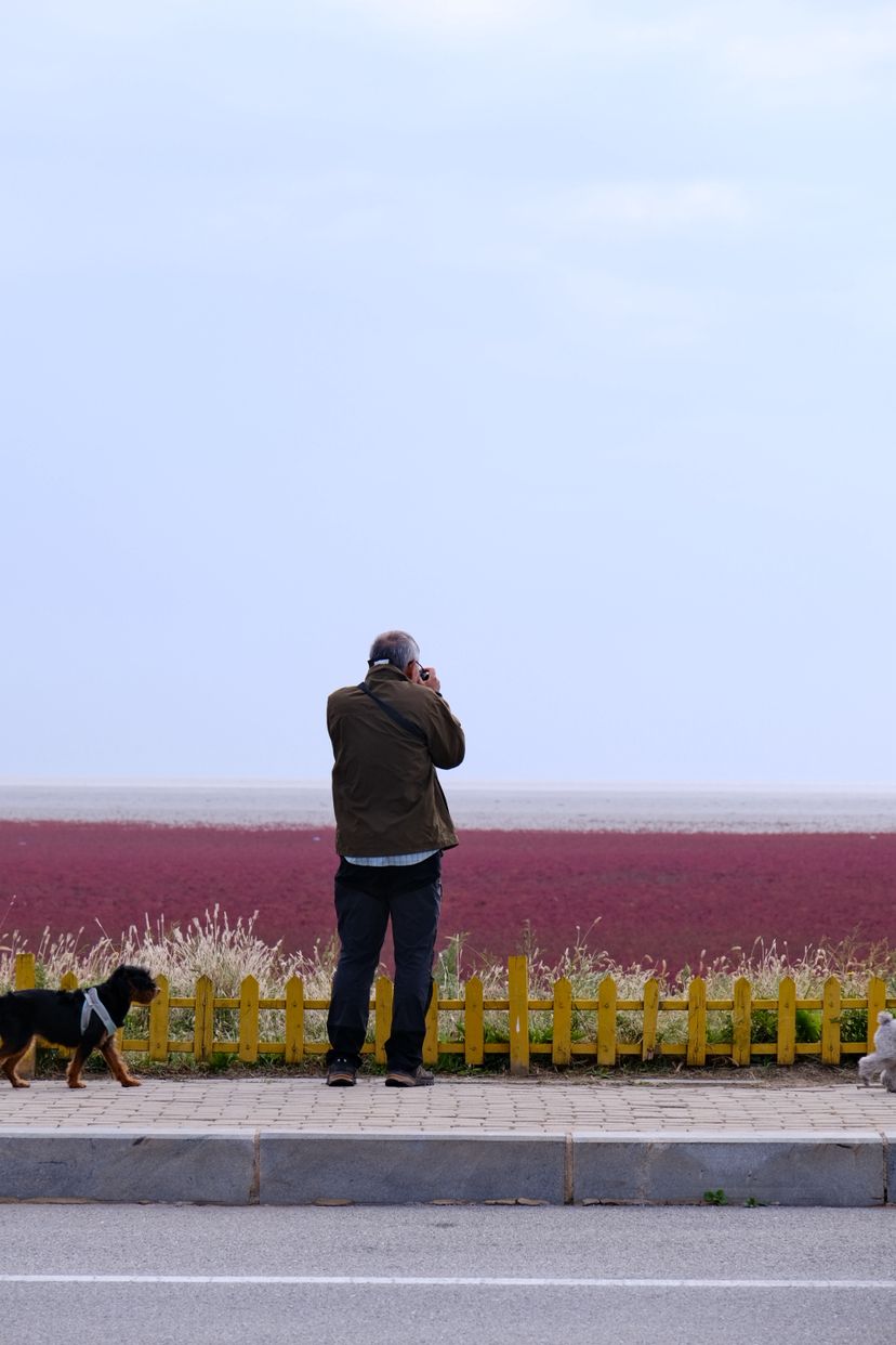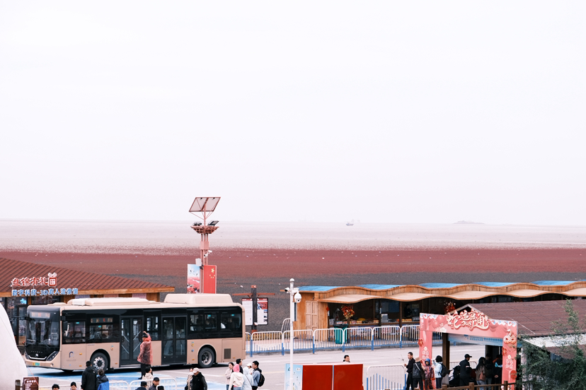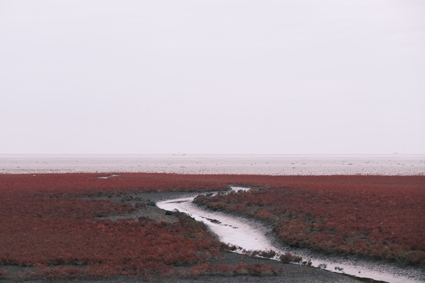 踏入盘锦红海滩,便闯进了大自然亲手织就的“红色地毯”。不同于春日的浅红、夏日的绯红,秋日的红海滩是最浓烈的模样——碱蓬草褪去青涩,连片铺展至渤海湾,赤焰般的色块与湛蓝海水相接,远处的风车缓缓转动,偶尔有白鹭掠过滩涂,划出一道灵动的弧线,构成“红、蓝、白”交织的绝美画卷。