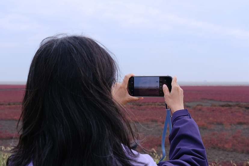 傍晚时分,夕阳为红海滩镀上金边,海水倒映着霞光与红滩,分不清是天染透了海,还是红滩映红了天。坐在滩涂边的木椅上,看归鸟掠过海面,听海浪轻拍岸线,才懂这份“中国红”的浪漫,藏在自然的馈赠里,更藏在秋日的盘锦时光中。