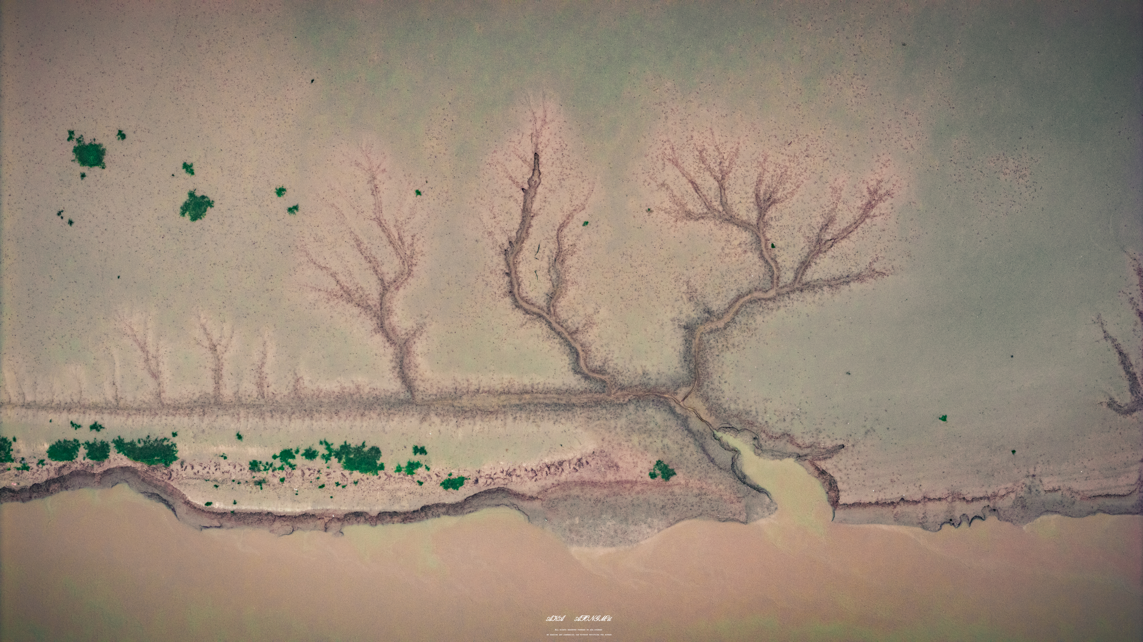 几年前, 中国 国家地理杂志刊登过一幅条子泥滩涂“潮汐树”的图片:一排生长在金黄地平线上的“深秋树林”,枝杈向陆,根部向海。