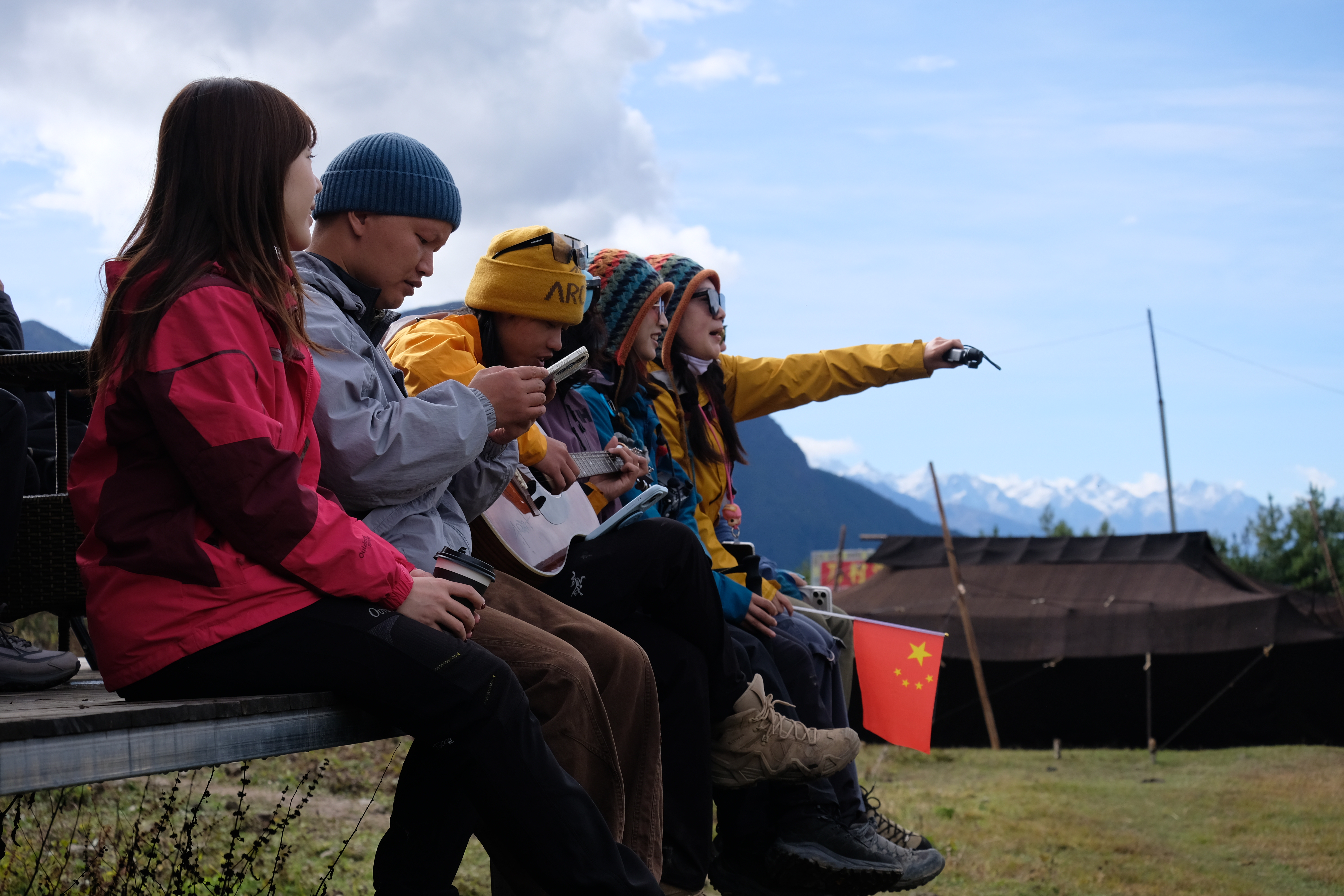 周围坐满了小伙伴们,我们一同高歌,在雪山下唱到醉氧