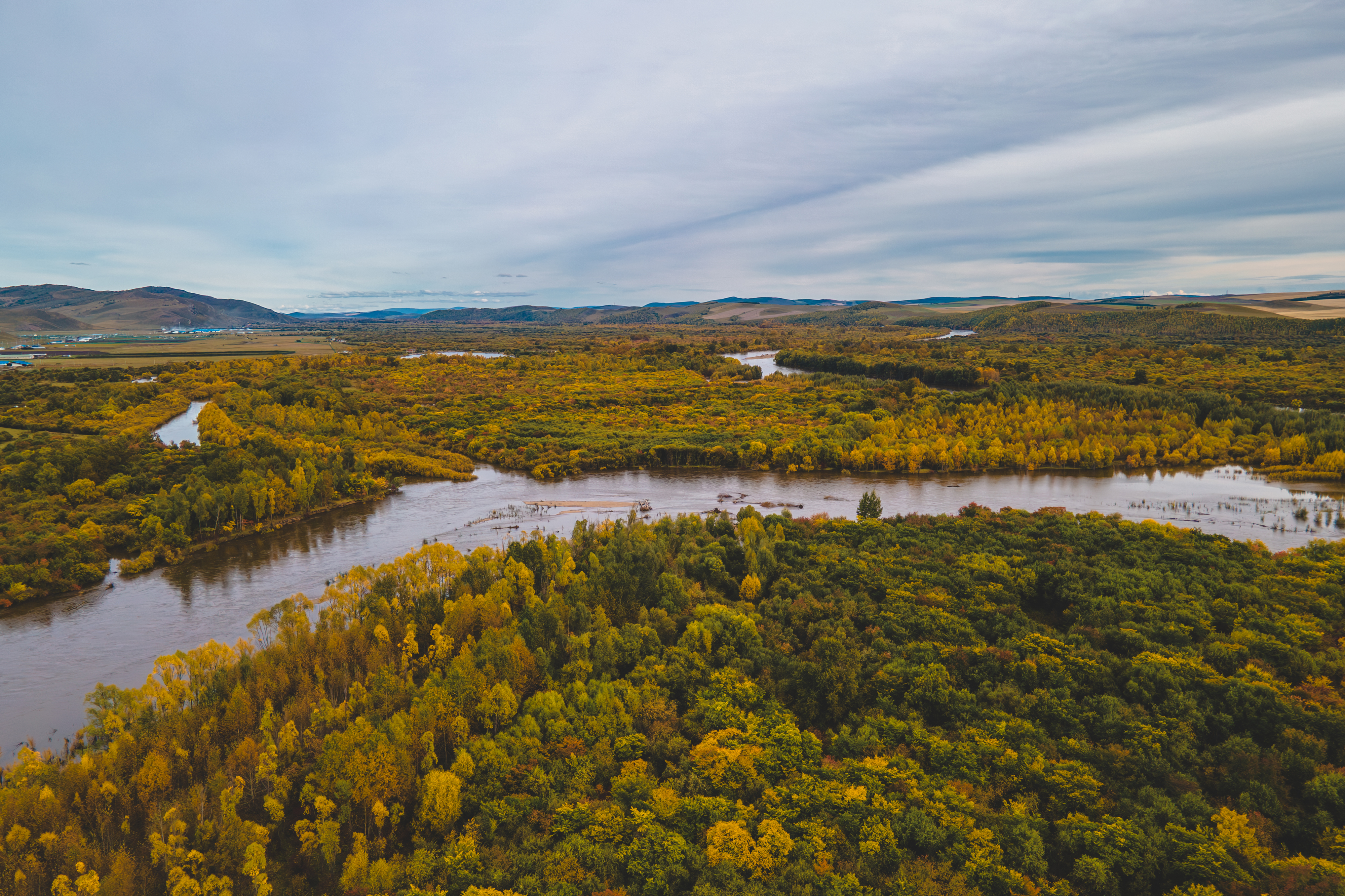 披上深深浅浅的金黄,草原与 大兴安岭 林海相接