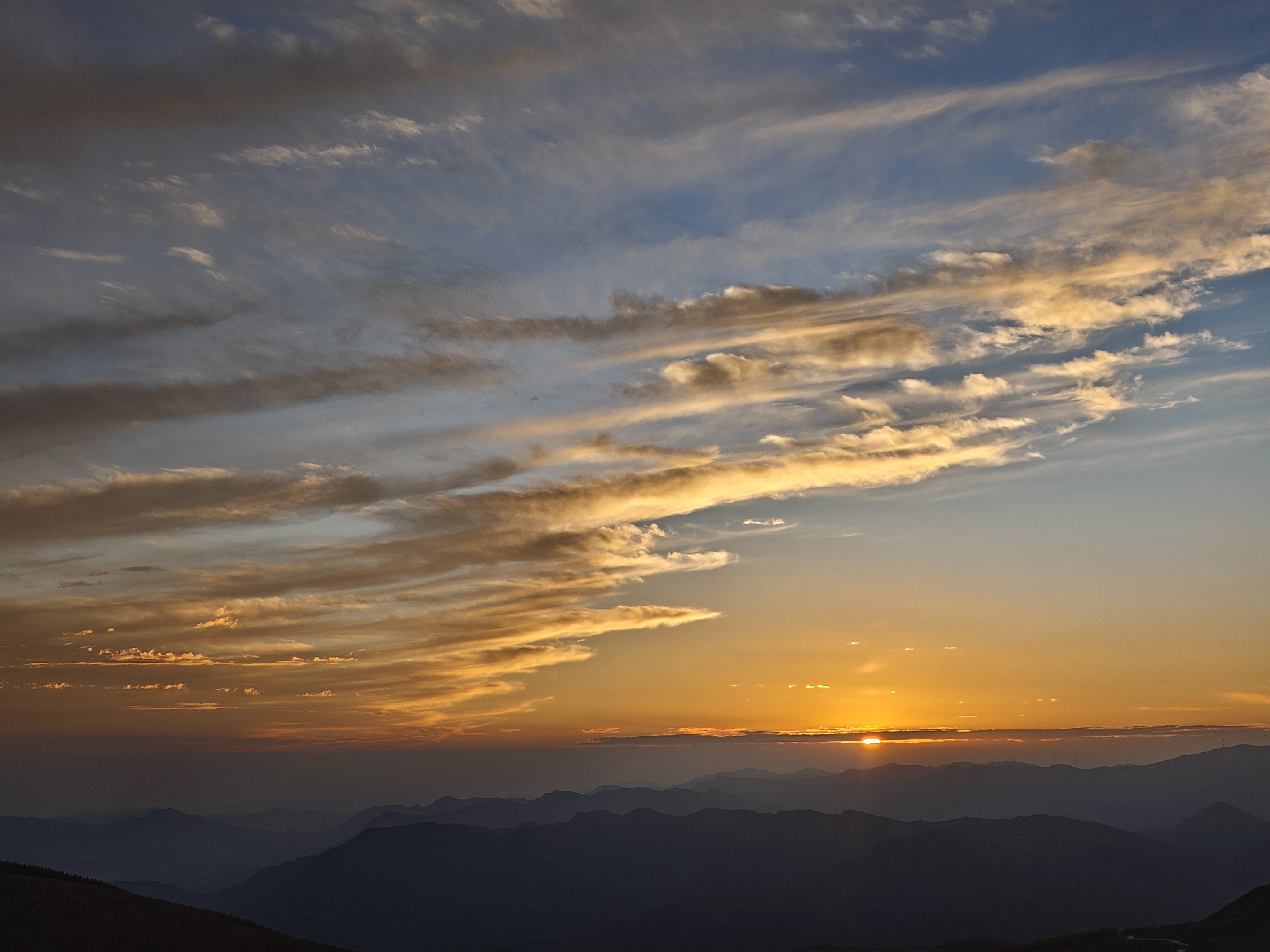 日落的余晖温柔地铺满山峦,我们与山风一起,送别今日的太阳,期待明日的云海日出。
