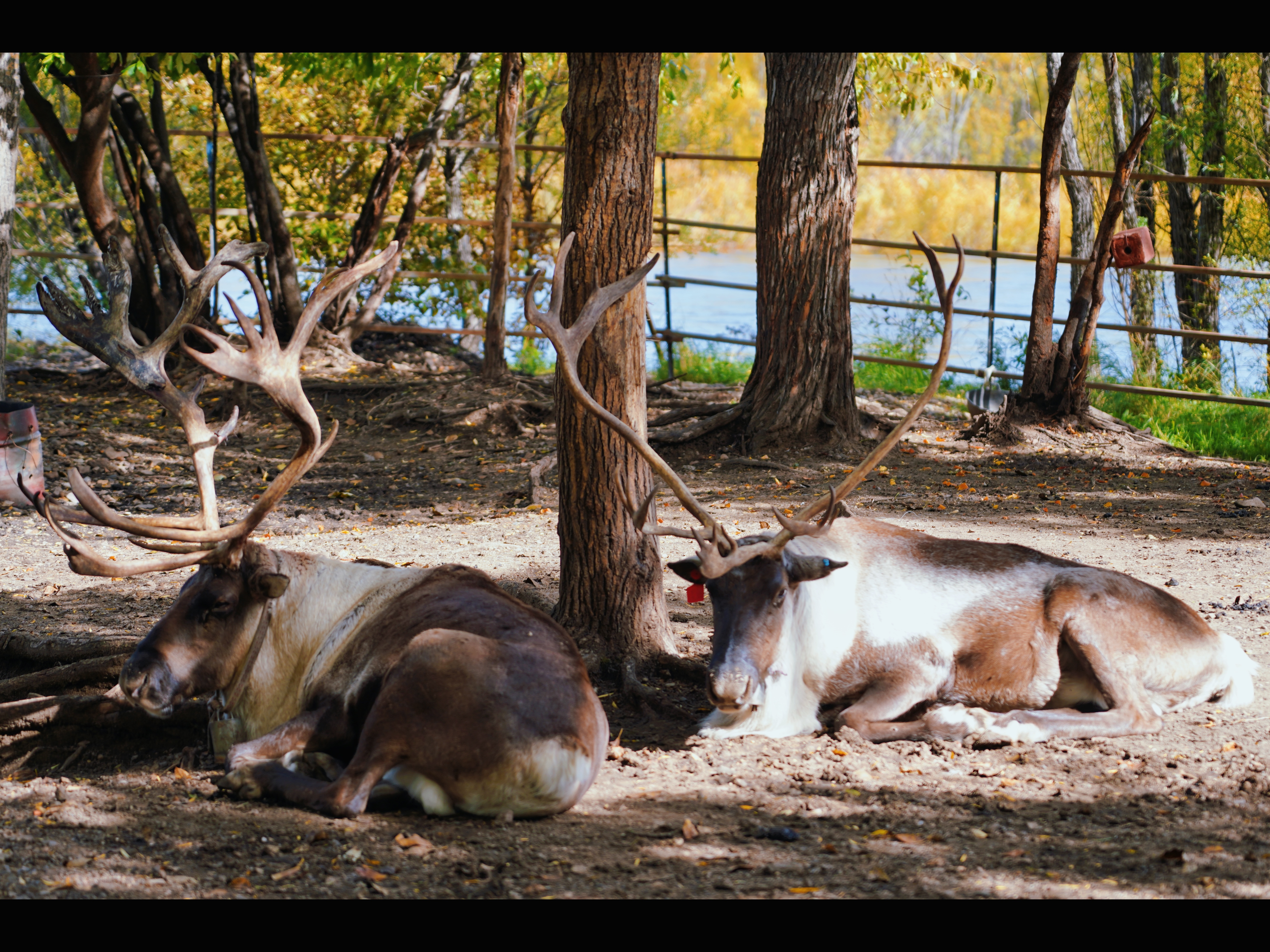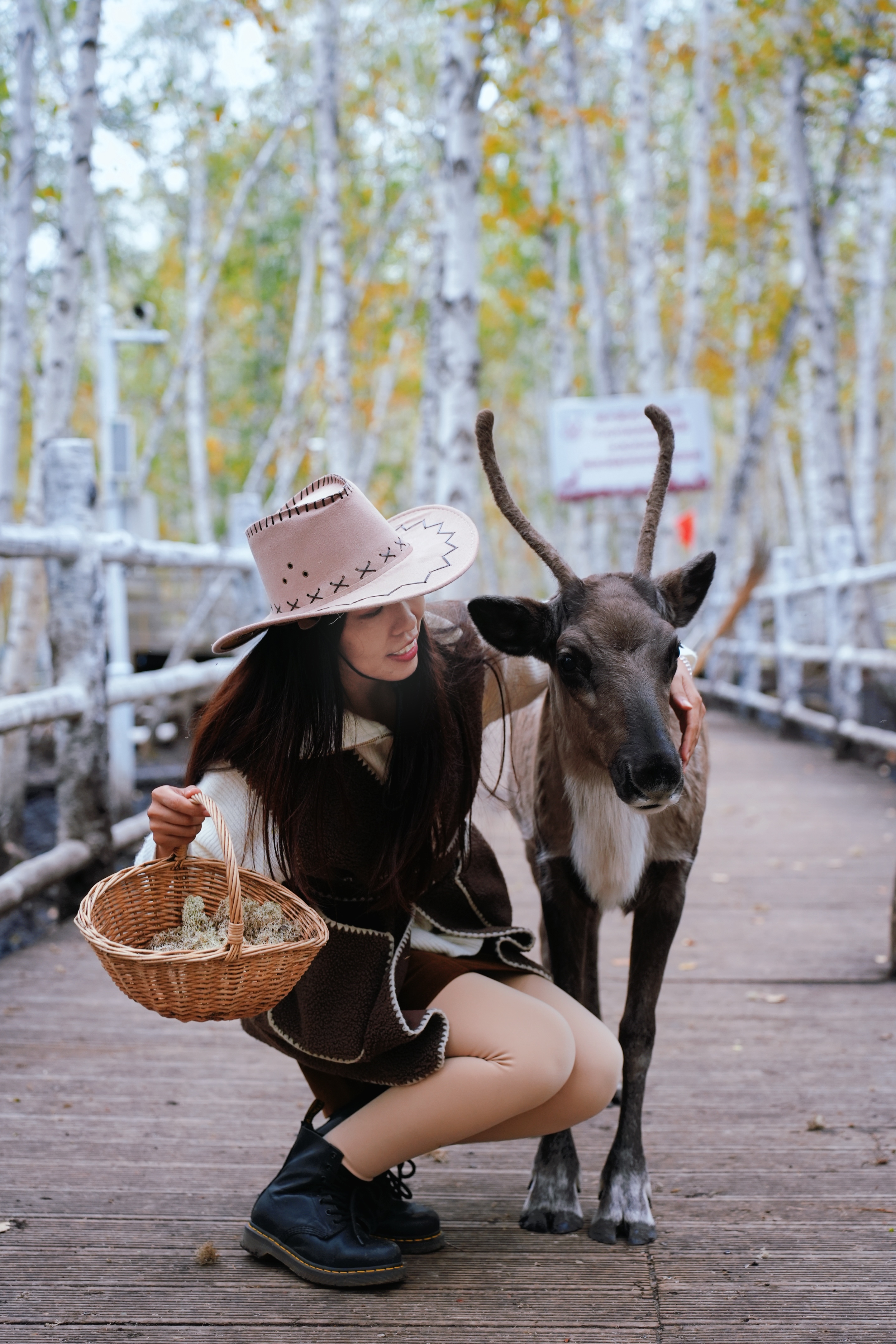 驯鹿性情温和,但现在正处于它们发情期,喂食倒是没关系,如果想和驯鹿贴贴,一定要小心点哟!