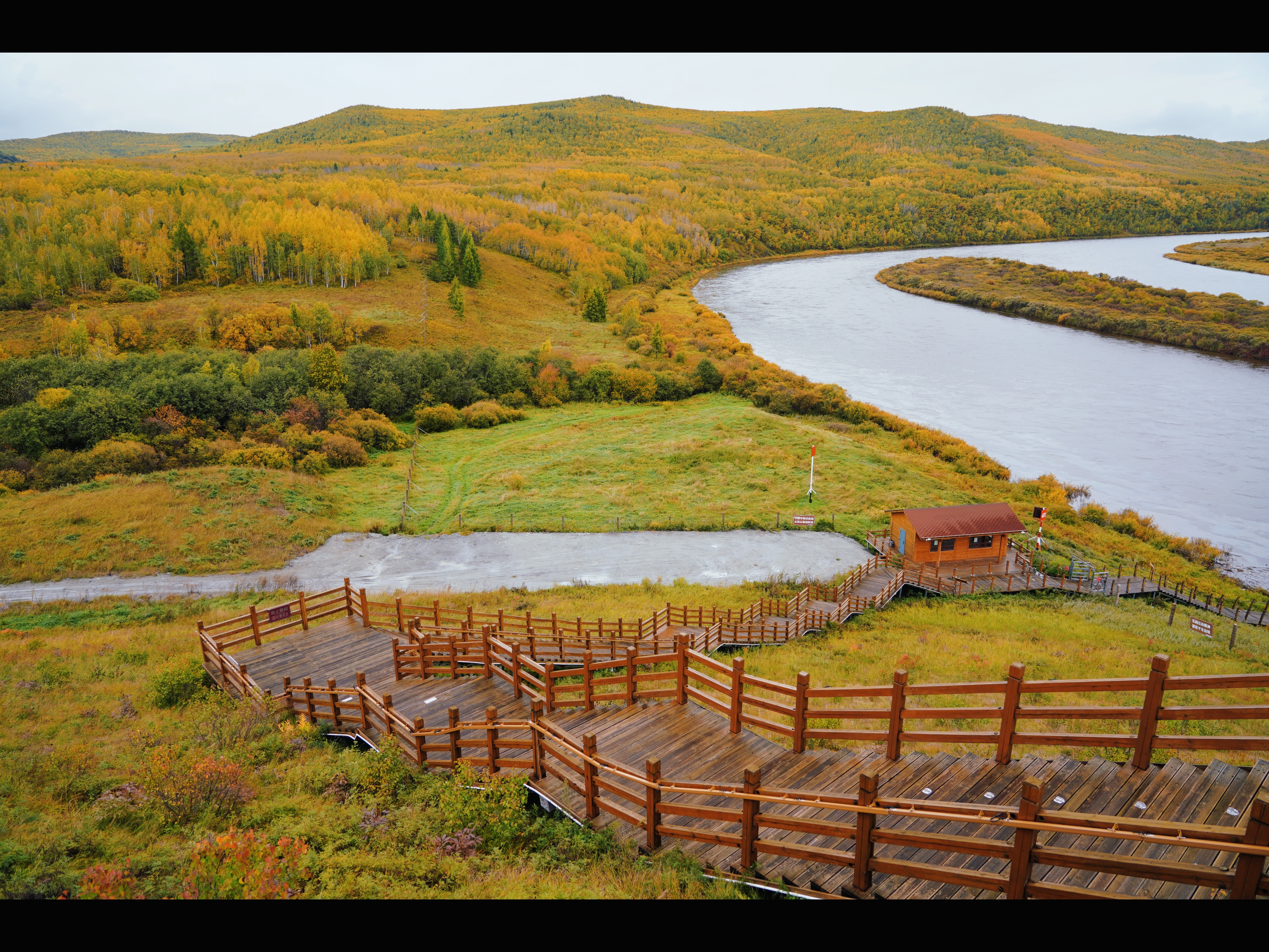 这里正处于森林草原过渡带,金黄的草场与碧蓝的河水交织,景色非常上镜。
