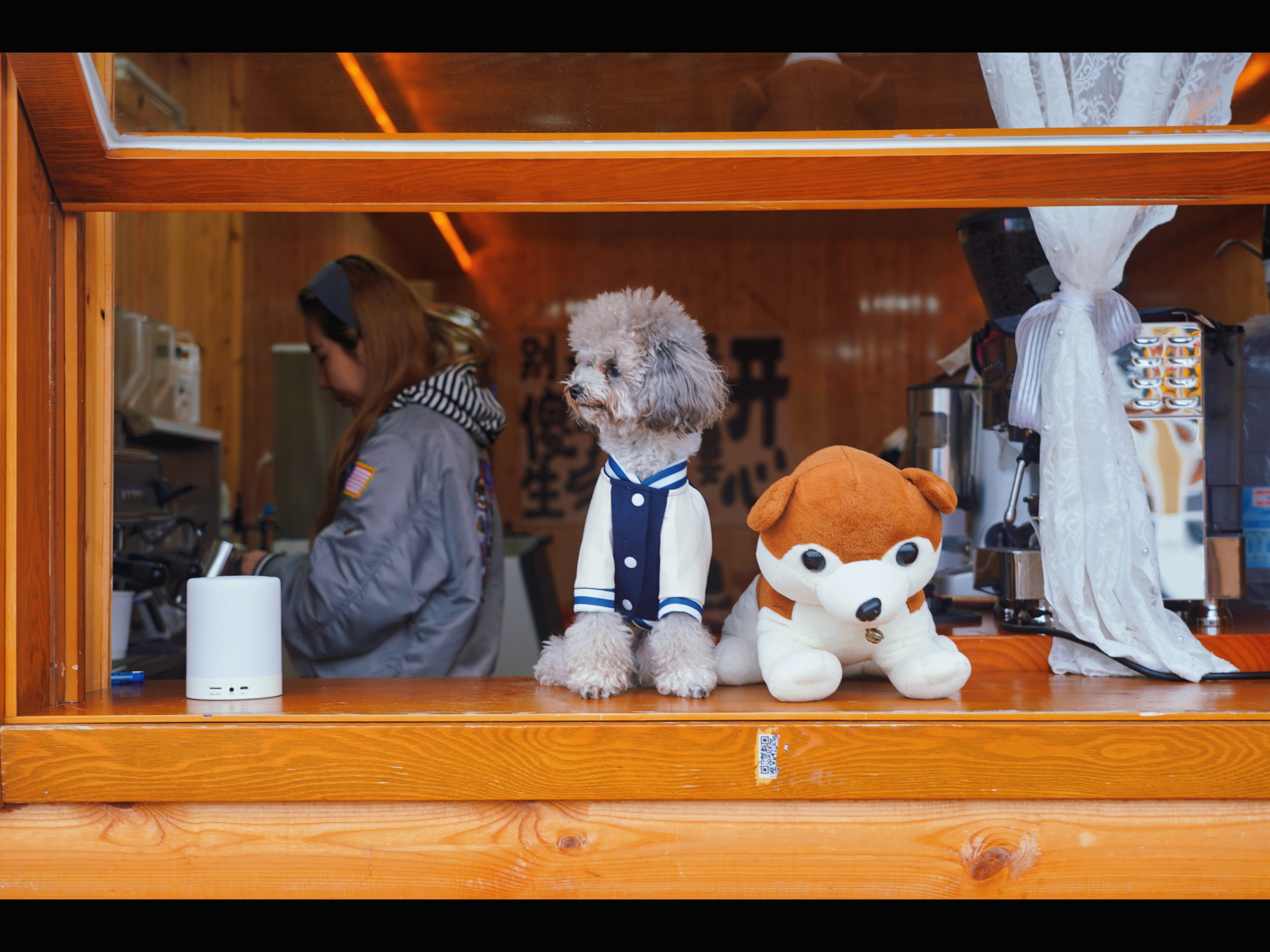 在室韦小镇,我们打卡了一家咖啡屋,窗台上的小狗像个娃娃,乖巧又可爱!