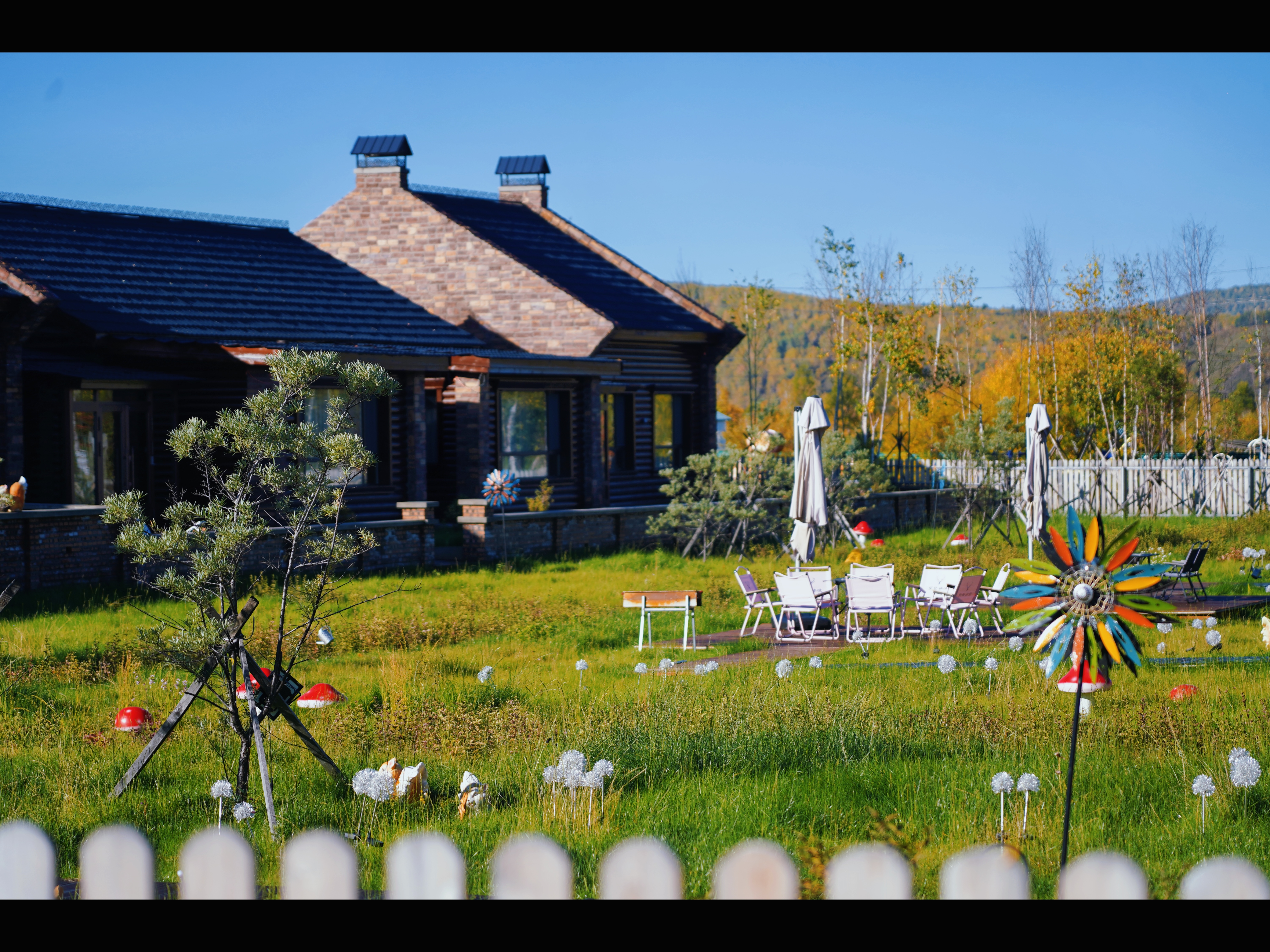 与其说是酒店,我更愿意称之为森林康养度假区。它是由原来的林场改造而成,被森林包裹着。一栋栋可爱的木刻楞排列整齐。