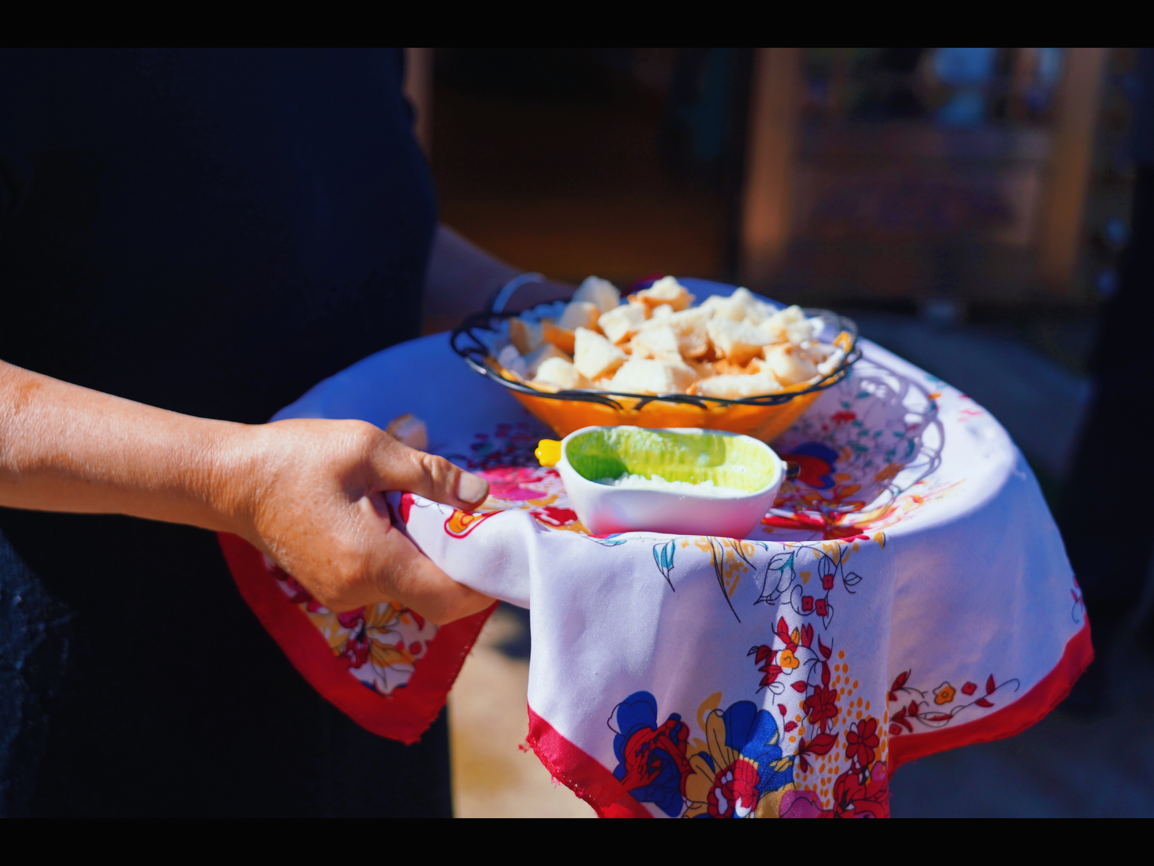 在这里,我们拜访了俄罗斯族家庭,品尝了主人家自制的俄式面包“列巴”和蓝莓酱,听他们讲述家族历史,听他们现场拉手风琴演唱俄语歌曲《喀秋莎》,最后还一起玩了他们的彩蛋游戏。