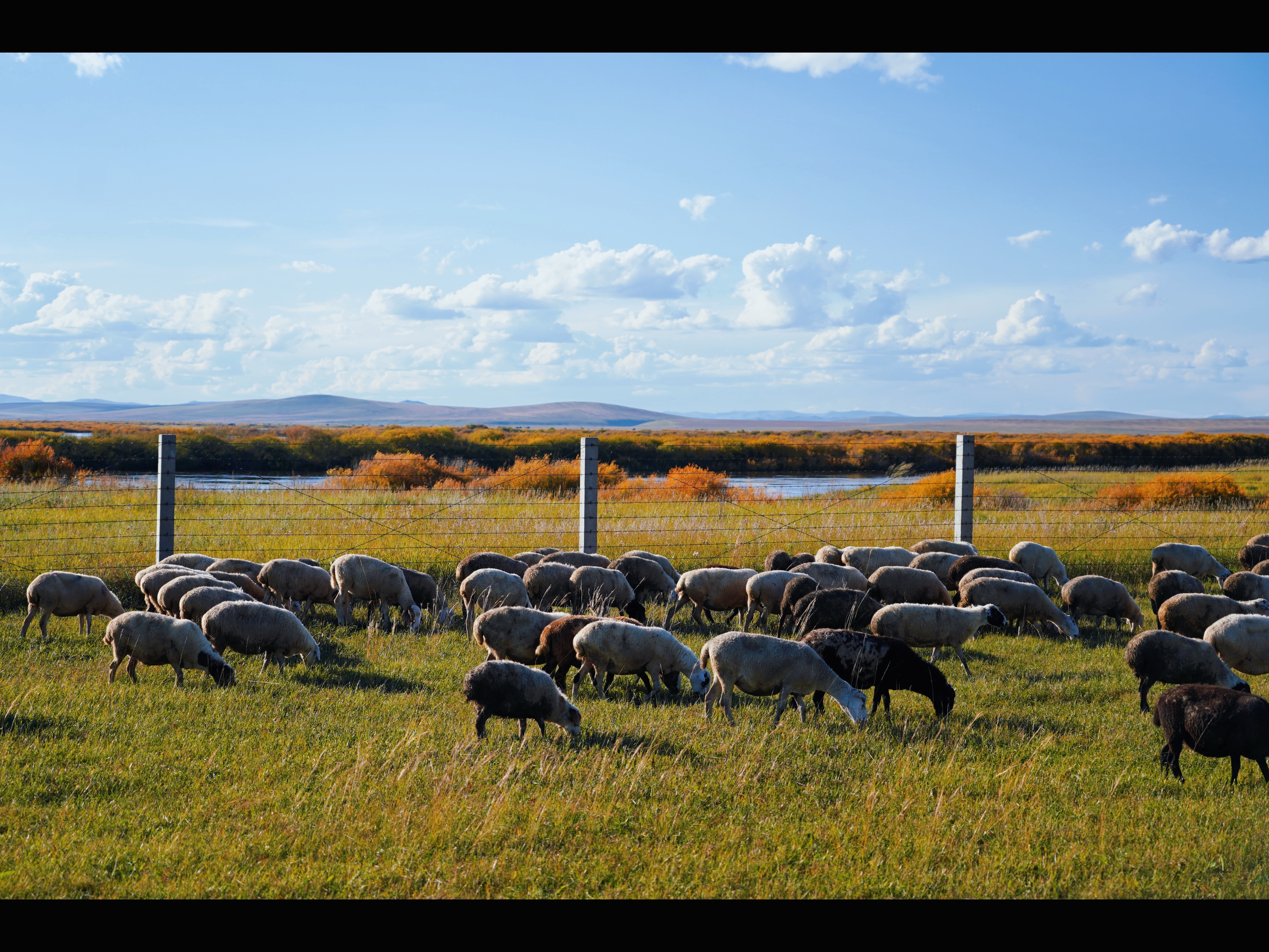 飞无人机还能看到湖边的羊群和牛马,再次感叹:额尔古纳的秋真的太美啦!