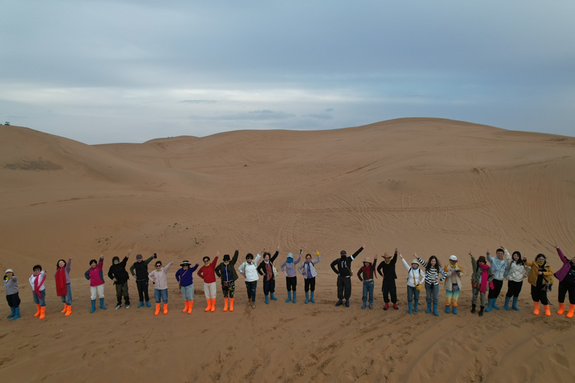 坐进越野车就知道这趟不一般,师傅一踩油门,车直接往沙丘上冲,大家手抓着扶手,心都跟着颠起来。车子在沙丘上时上时下,重复的失重感让大家喊叫出声,好不刺激。驰骋在茫茫无际的腾格里大沙漠,2千多年前丝绸之路的开拓者们,怎么也不会想到我们能在短短的几个小时穿越腾格里沙漠。