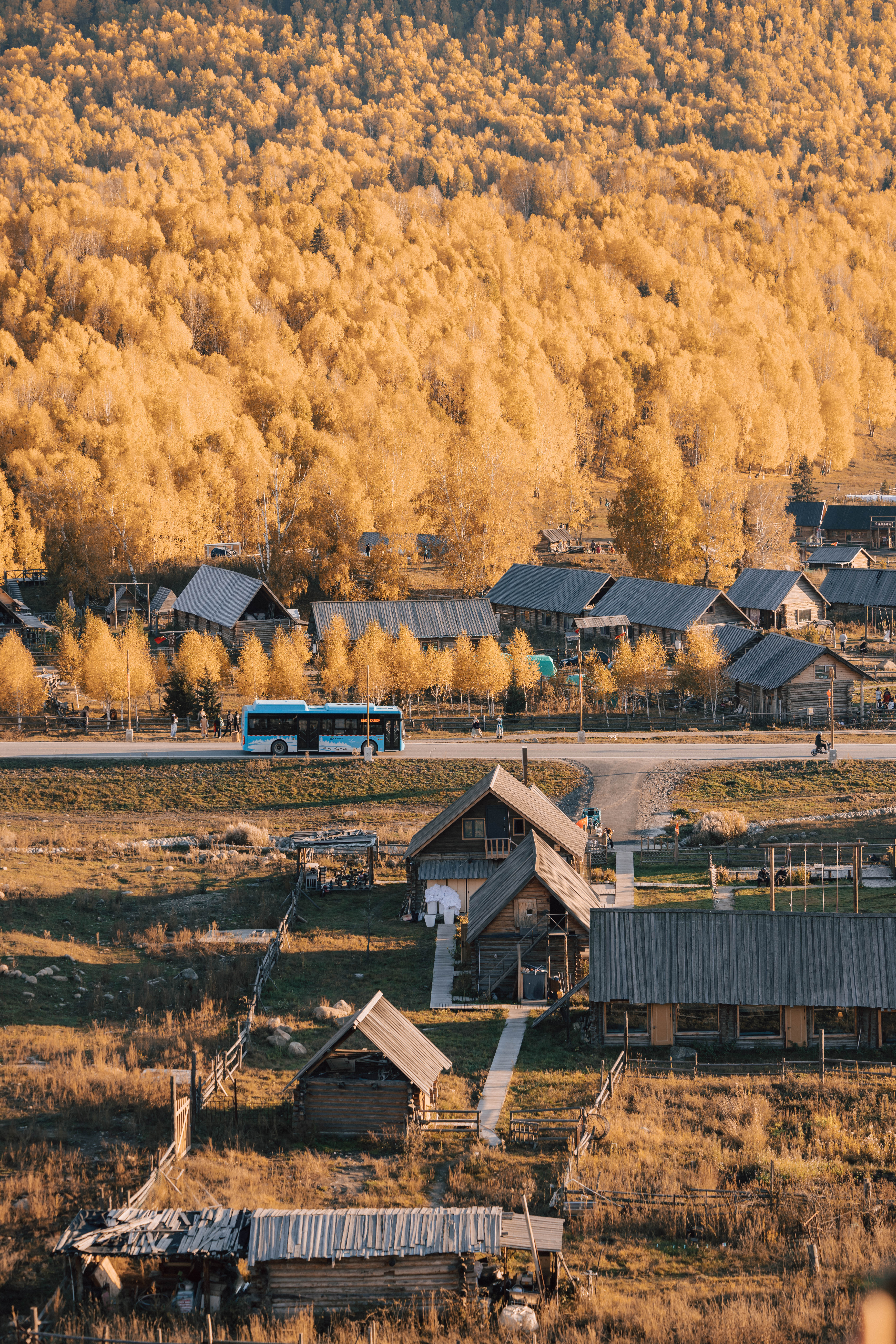 到了下午四点左右才从喀纳斯离开,坐喀纳斯景交车前往白哈巴村,到达白哈巴村大概五点半,办理完入住之后前往观景台拍摄日落