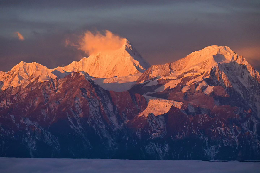 日出日落:日出日落时分的日照金山是鱼子西的一大特色景观,阳光照耀下,雪山被染成金色,与蓝天相互映衬,美轮美奂。