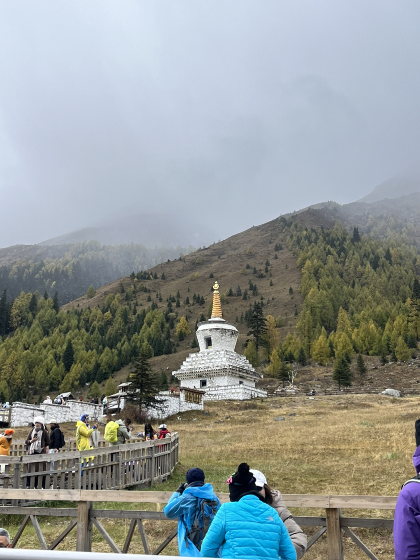 咱们是巴郎山线路,成都-都江堰-映秀-卧龙-巴朗山-四姑娘山,全程约200公里,车程为5小时左右。此路线映秀至卧龙段道路状况较差,轿车需择路缓行,这个季节10月底的巴朗山已经下起了大雪,路边的树木和草地都被雪包裹上了白色绒毛,喜欢上了银装,非常漂亮,只是需小心驾驶。