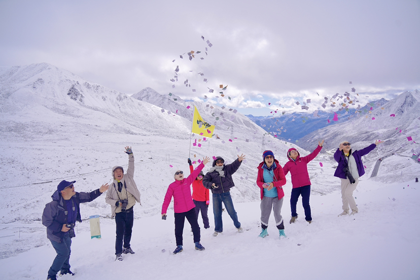 集合日的成都,空气中还残留着夏末的湿热。傍晚,我们在武侯祠旁的酒店集结,彼此的眼神里都闪烁着对远方的憧憬。第二天清晨,车队沿着成雅高速一路向西,车窗外的景色从都市的喧嚣,逐渐过渡到川西平原的辽阔。翻过海拔4298米的折多山垭口,藏区的气息扑面而来——五彩经幡在风中猎猎作响,远处的雪山在云层中若隐若现。
