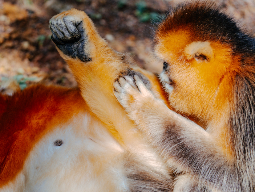 年岁越大的金丝猴,其毛色就越深,在阳光的照射下,显得格外的可爱。