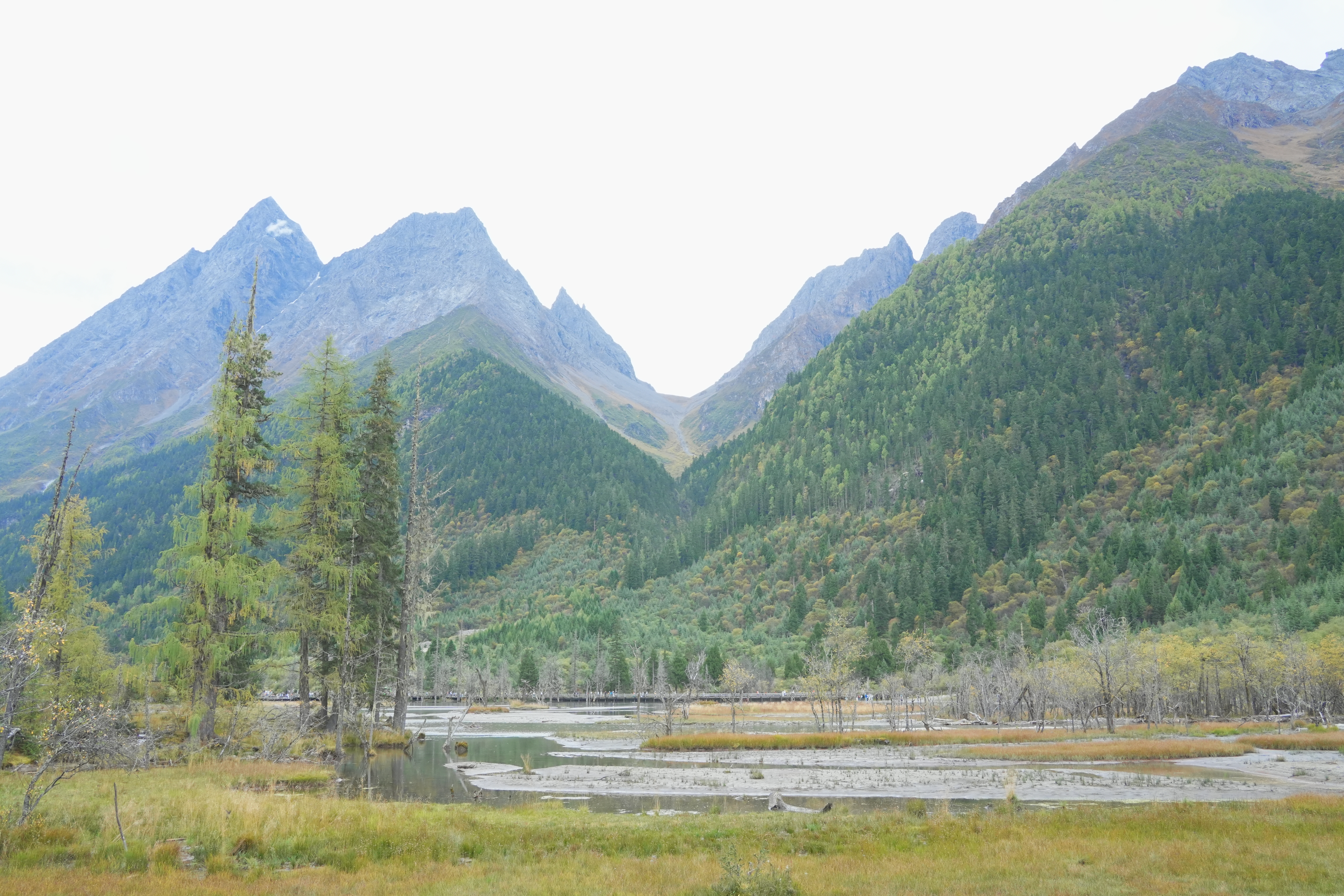双桥沟的景色美得令人屏息。我们乘坐观光车一路向上,红杉林的栈道上,脚下是青翠的草甸。