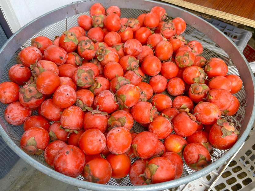 我们的寻秋之旅从茅镬村启程,瞻仰“万木之冠”的千年金钱松。正午的阳光把松针照得透亮,金钱松的影子扫过脚面,凉丝丝的,像踩着碎银子走路,工作烦心事早被山风卷走。巡四明山小径,沿途枫叶渐变,一路走到柿林村,眼前尽是红柿子!村口那棵600岁的柿树王最抢眼,村民们挂满的红绸在风中飘舞,枝桠像虬劲的龙爪,抓着串串“吊红”。灯笼似的柿子成串,阳光一照,红得透亮。不少熟透了的柿子散落在地,青石板路都映上了柿红。路边卖柿子的奶奶说:“这树自明朝就站这儿了,年年结的柿子甜得粘牙”。我买了一篮熟透的,轻咬一小口,蜜汁儿顺着牙缝往下淌,果肉软得像化了的糖,比市区水果摊的甜十倍不止。村里家家户户的院子里,竹匾摆得像画展——五色豆子、玉米金粒、辣椒火红、南瓜片暖黄,全摊在白墙黑瓦的晒台上。最妙是那柿子,有的整筐堆着,有的压成柿饼串成串儿挂在檐下,红得像跳动的火苗。风一吹,柿子轻轻晃,连空气里都飘着甜香。村里的老柿林酒坊飘出酒香,师傅舀起自酿的柿子酒,琥珀色的酒液晃得心里暖洋洋。隔壁咖啡馆的落地窗正对着柿子树,品着咖啡,再尝尝刚买的柿子和八月扎,那叫一个美满!在领队们的指引下,翻过小坡,继续往李家坑村去。古道上的土路石阶,午后的阳光从树叶缝里漏下来,斑斑点点像撒了把金粉,山风裹着柿香往鼻子里钻。抬头看,柿子压弯了枝桠,路边老农正拿着特制的长杆收着果实,脸上洋溢着都是丰收的喜悦。这一路来像是在画里走——柿子、枫叶、茶园、老屋巷,处处都是景,连呼吸都带着甜丝丝的香气。李家坑村口老银杏树下,阿婆正要收摊回家做饭,10块钱3斤的柿子,我没有犹豫,又买下一筐,咬一口,甜汁儿在嘴里炸开,连舌尖都染上了秋色。跟着伙伴们循着炒年糕的香味又去转角馆子里坐下,柴灶火映着老太太和蔼的笑脸,暖进人心窝子。