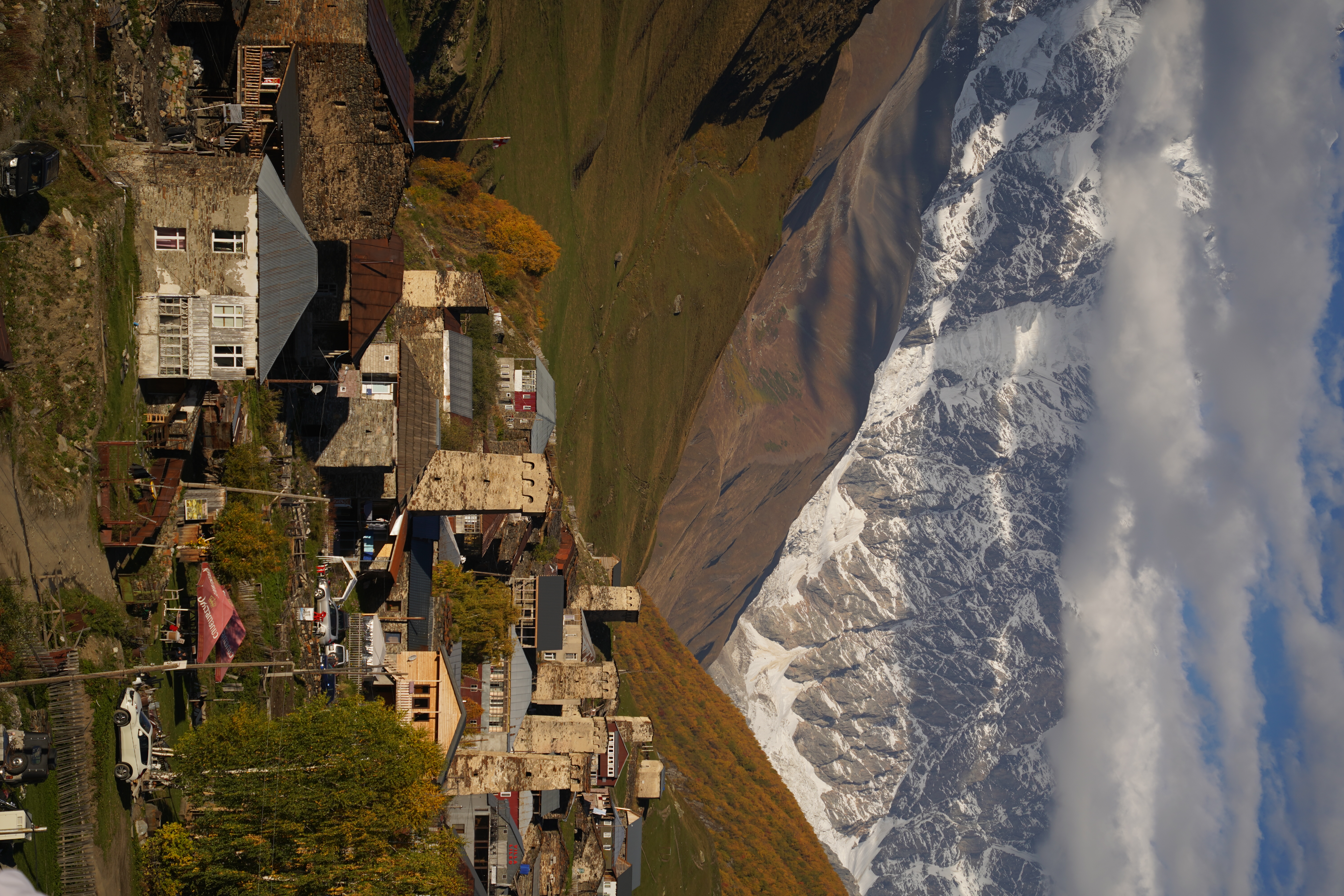 从梅斯蒂亚换乘四驱车,沿着更险峻的土路前行,最终抵达了此行的海拔最高点——乌树故里。这座“欧洲最高有人居住的村落”,仿佛被时光遗忘。古老的石塔群在晨雾中若隐若现,村民们依然过着半游牧的生活,牛羊在村中悠闲穿行。站在这里,四周是海拔5000米以上的雪峰环绕,空气清冷而稀薄,时间仿佛流淌得异常缓慢。这里的景色有一种苍凉、壮阔、永恒的美,它不似人间,更像一个远古的梦。离开时,回望那片在云雾中若隐若现的村庄,我仿佛完成了一场对纯粹与永恒的朝圣。
