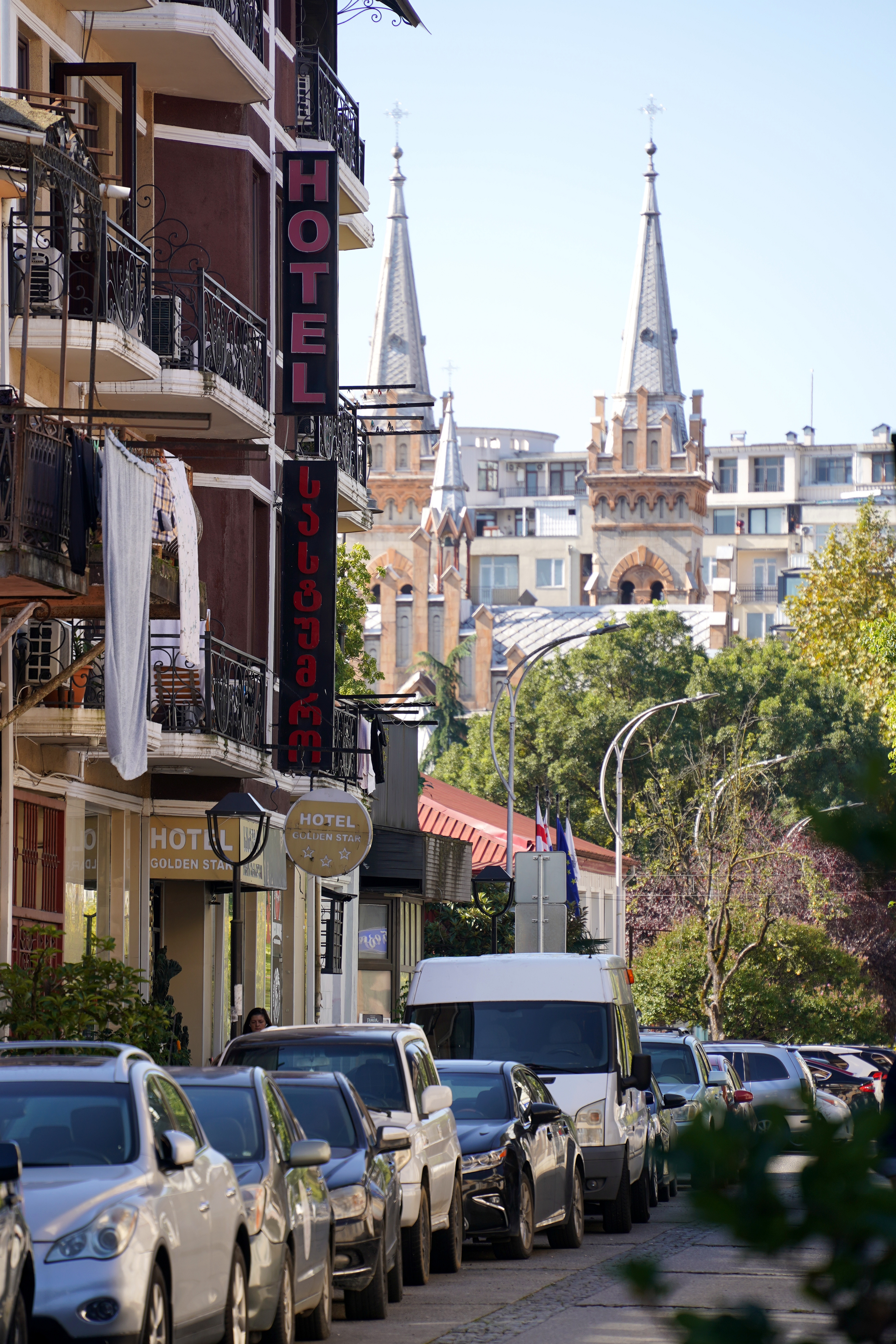 圣三一大教堂是第比利斯最显眼的地标,无论在城市哪个角落,几乎都能看到它巨大的金色圆顶。走近看,教堂的规模更显宏伟,整体建筑是典型的格鲁吉亚风格,庄重而简洁。进入教堂内部,光线骤然变得幽暗,空气中混合着烛火和旧木头的味道。信徒们安静地划着十字,在圣像前低声祷告。虽然我不是信徒,但身处那种肃穆的氛围中,心也会自然而然地沉静下来。