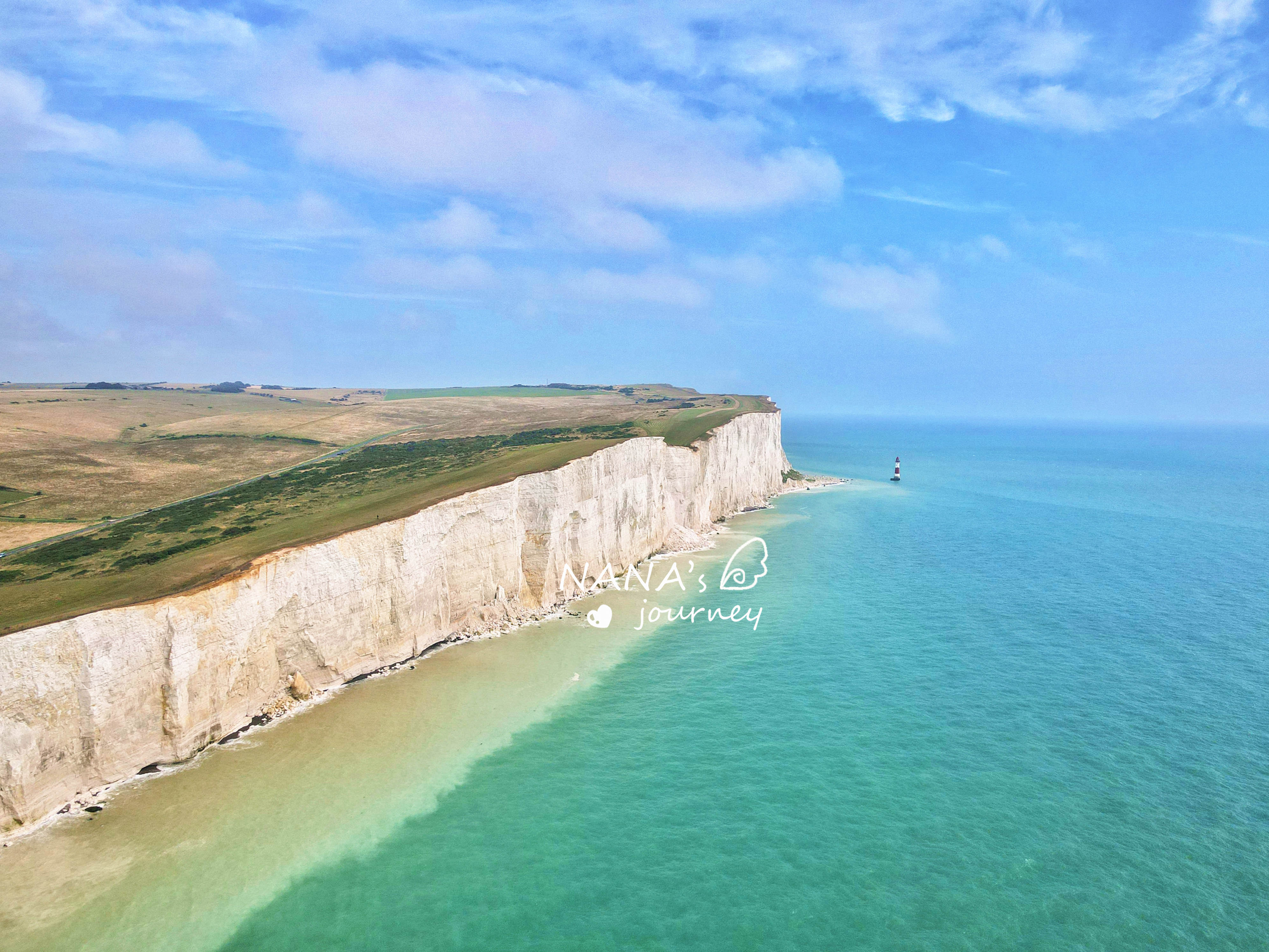 七姐妹白崖,巍峨海岸线如同一面白墙伫立在蓝色海洋之上,绵延至远方。这是由七座断崖(White Cliffs)相连,而称为七姐妹,是白垩纪时期就形成的断崖,记载着地球的古老的记忆。