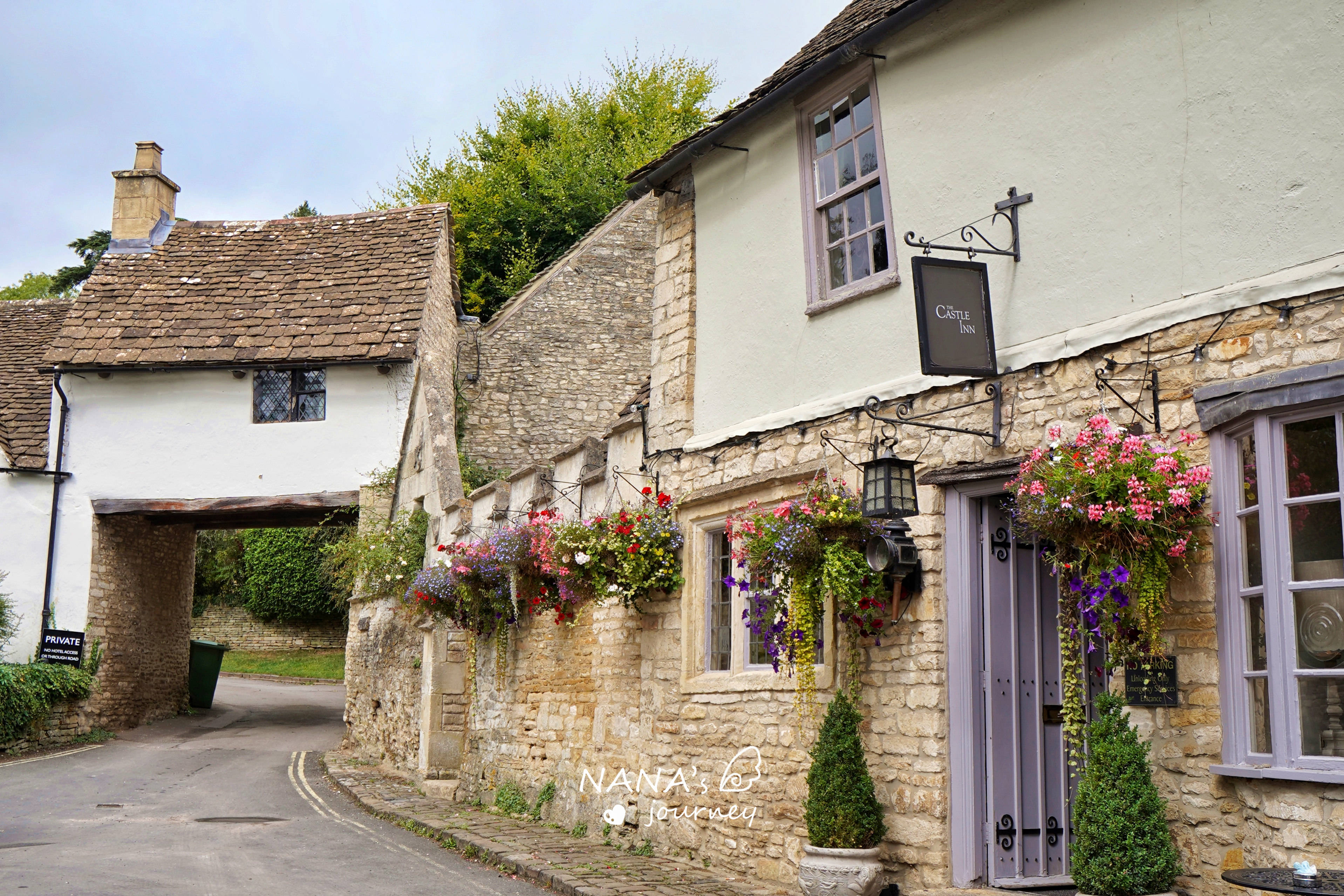 Castle Combe的车必须停在外围的停车场,然后步行下山,一路上有不少可爱的小房子,一栋栋的各不相同,但这里人把对童话的渴望都体现在了这些屋子之上。